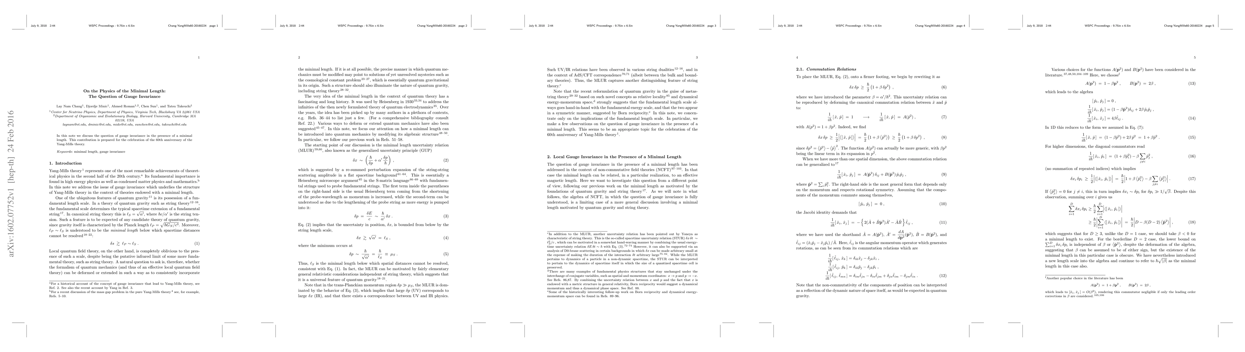 In this note we discuss the question of gauge invariance in the presence of a minimal length. This contribution is prepared for the celebration of the 60th anniversary of the Yang-Mills theory.