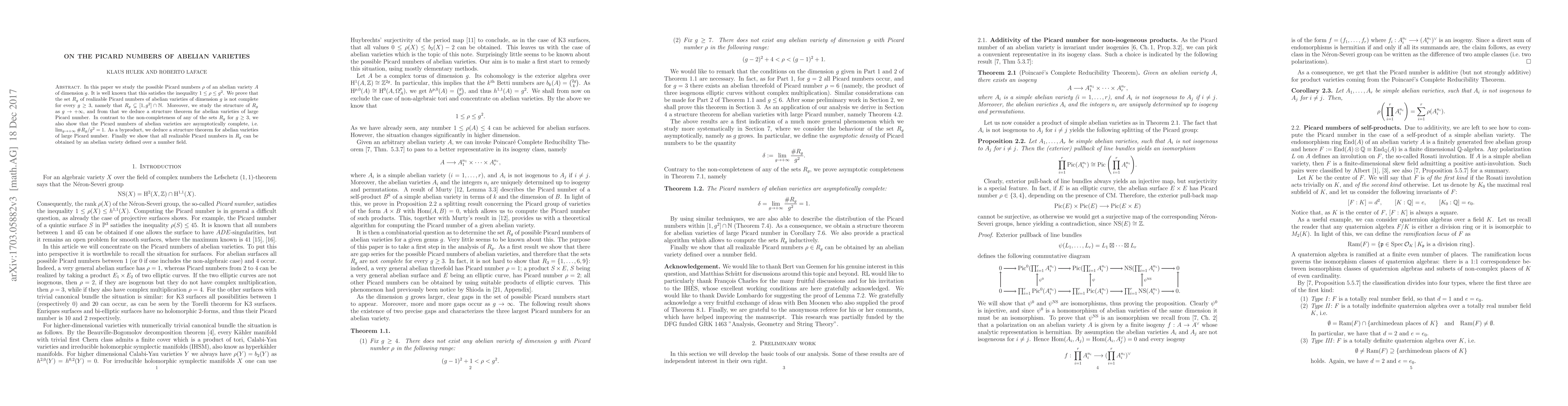 This paper investigates the maximal possible Picard numbers for abelian varieties of dimension $g$, proving that these numbers are bounded by $g^2$ and demonstrating the presence of gaps for $g \geq 3$. It also establishes the asymptotic completeness of Picard numbers in the interval $[1, g^2]$ as $g$ tends to infinity, and shows that any Picard number realizable over complex numbers is also realizable over a number field.