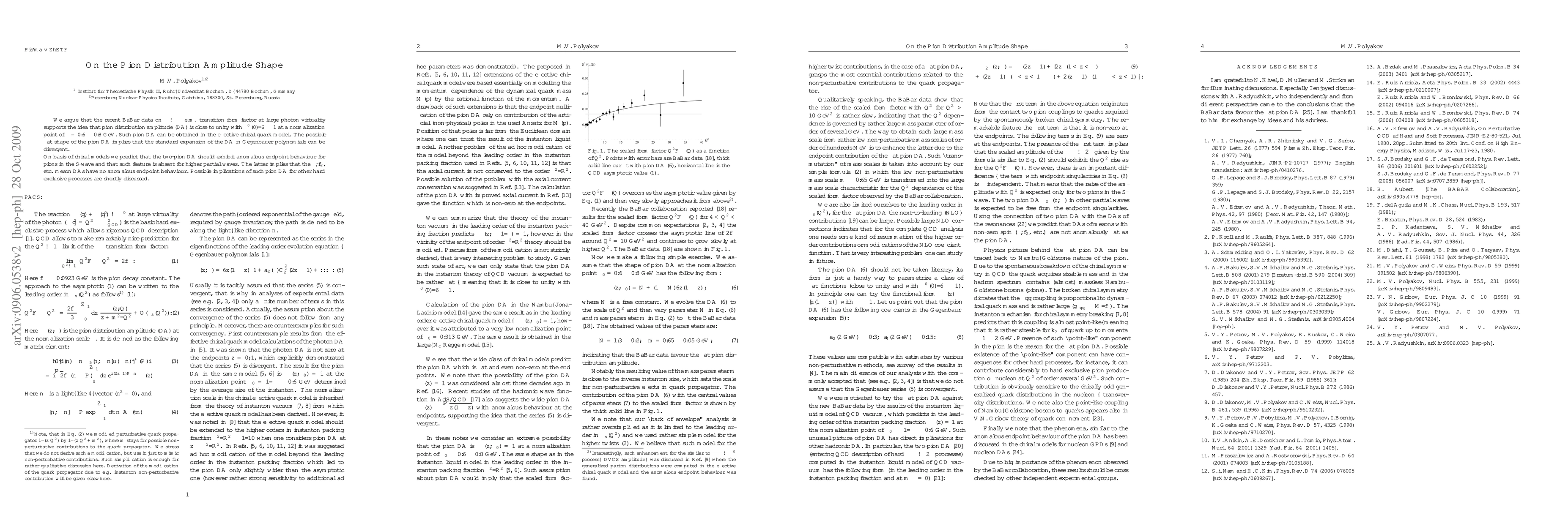We argue that the recent BaBar data on $\gamma \to \pi$ e.m. transition form factor at large photon virtuality supports the idea that pion distribution amplitude (DA) is close to unity with $\phi_\pi^\prime(0)/6\gg 1$ at a normalization point of $\mu=0.6\div 0.8$ GeV. Such pion DA can be obtained in the effective chiral quark model. The possible flat shape of the pion DA implies that the standard expansion of the DA in Gegenbauer polynomials can be divergent. On basis of chiral models we predict that the two-pion DA should exhibit anomalous endpoint behaviour for pions in the S-wave and that such feature is absent for higher partial waves. The latter implies that the $\rho, f_2$, etc. meson DAs have no anomalous endpoint behaviour. Possible implications of such pion DA for other hard exclusive processes are shortly discussed.