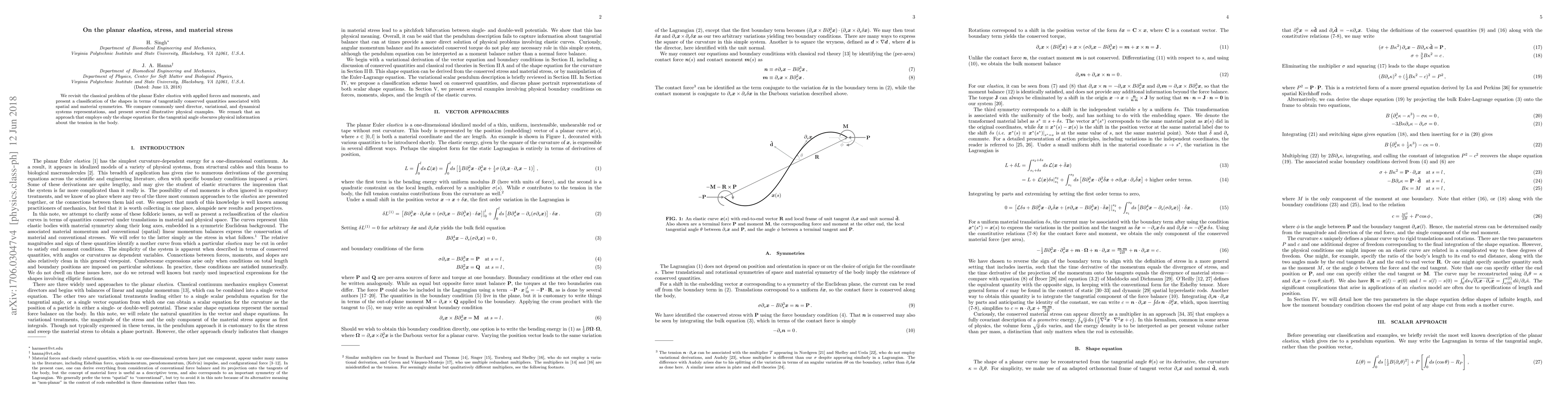 We revisit the classical problem of the planar Euler \emph{elastica} with applied forces and moments, and present a classification of the shapes in terms of tangentially conserved quantities associated with spatial and material symmetries. We compare commonly used director, variational, and dynamical systems representations, and present several illustrative physical examples. We remark that an approach that employs only the shape equation for the tangential angle obscures physical information about the tension in the body.