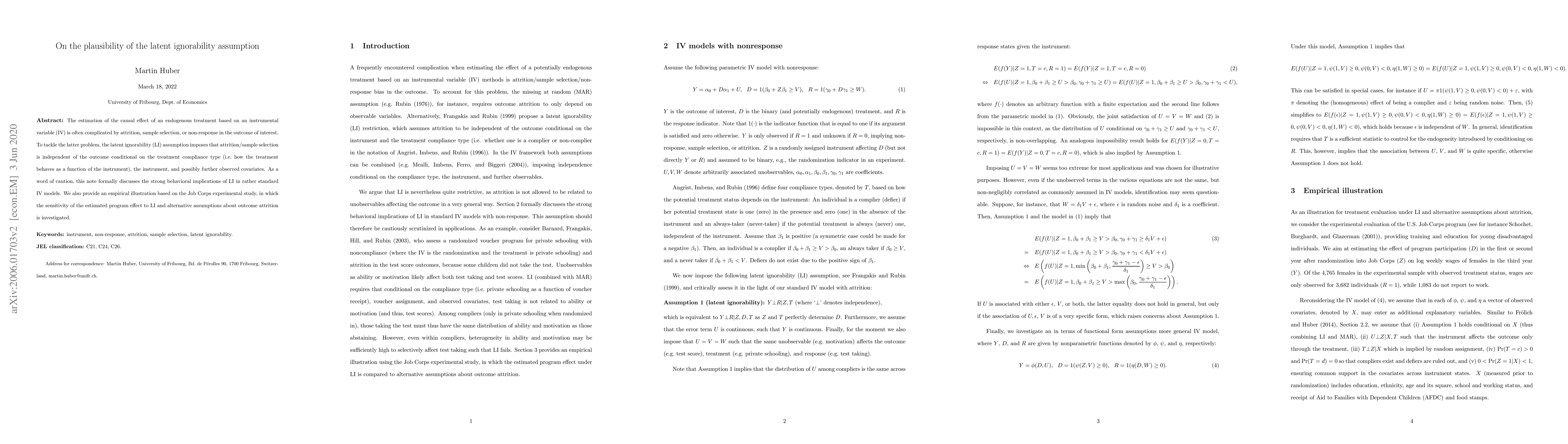 The estimation of the causal effect of an endogenous treatment based on an instrumental variable (IV) is often complicated by attrition, sample selection, or non-response in the outcome of interest. To tackle the latter problem, the latent ignorability (LI) assumption imposes that attrition/sample selection is independent of the outcome conditional on the treatment compliance type (i.e. how the treatment behaves as a function of the instrument), the instrument, and possibly further observed covariates. As a word of caution, this note formally discusses the strong behavioral implications of LI in rather standard IV models. We also provide an empirical illustration based on the Job Corps experimental study, in which the sensitivity of the estimated program effect to LI and alternative assumptions about outcome attrition is investigated.
