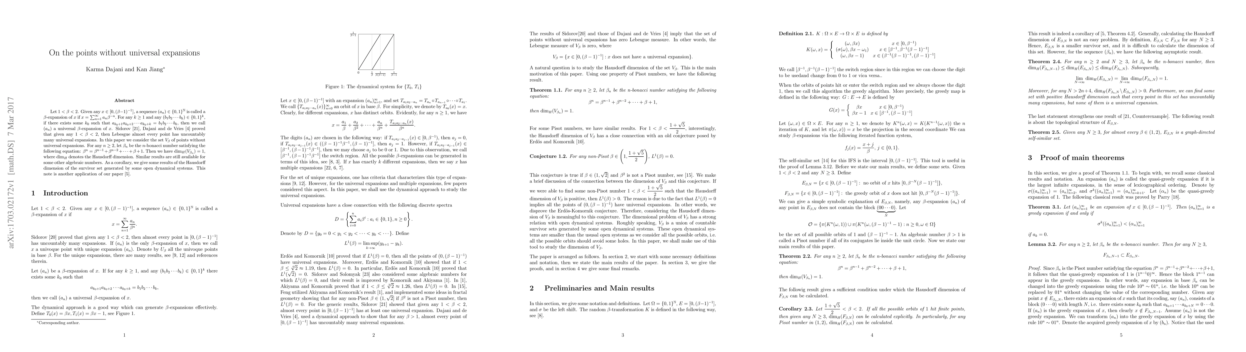 This paper investigates the set $V_{\beta}$ of points without universal $\beta$-expansions for $1<\beta<2$. It finds that the Hausdorff dimension of $V_{\beta_n}$, where $\beta_n$ is an $n$-bonacci number, is 1. The study extends to other algebraic numbers and provides results on the Hausdorff dimension of the survivor set in open dynamical systems.