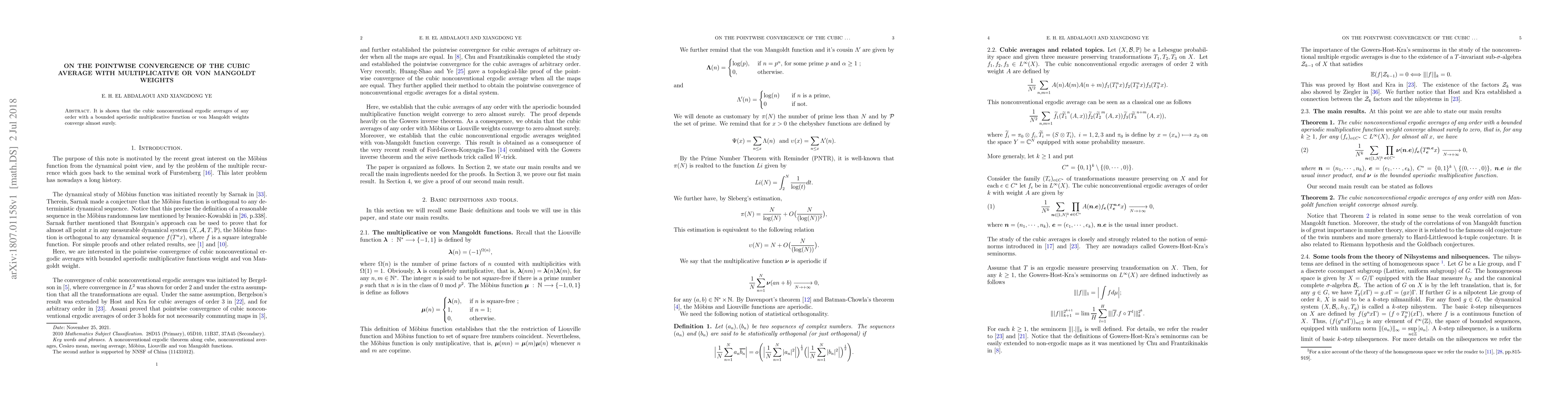 Summary: This paper demonstrates that cubic ergodic averages of any order, weighted by bounded aperiodic multiplicative functions or von Mangoldt weights, converge almost surely. The findings provide insight into the pointwise convergence behavior of these nonconventional ergodic averages.