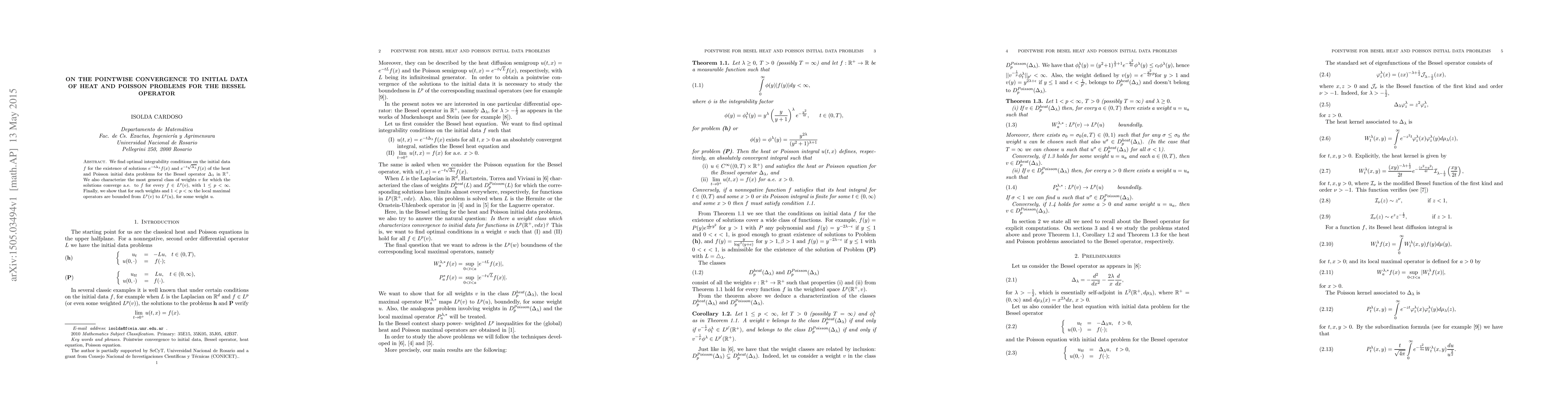 This paper establishes optimal integrability conditions for the initial data in the heat and Poisson problems for the Bessel operator, ensuring the existence of solutions. It also characterizes the general class of weights under which these solutions converge almost everywhere to the initial data, and proves boundedness of local maximal operators for these weights.