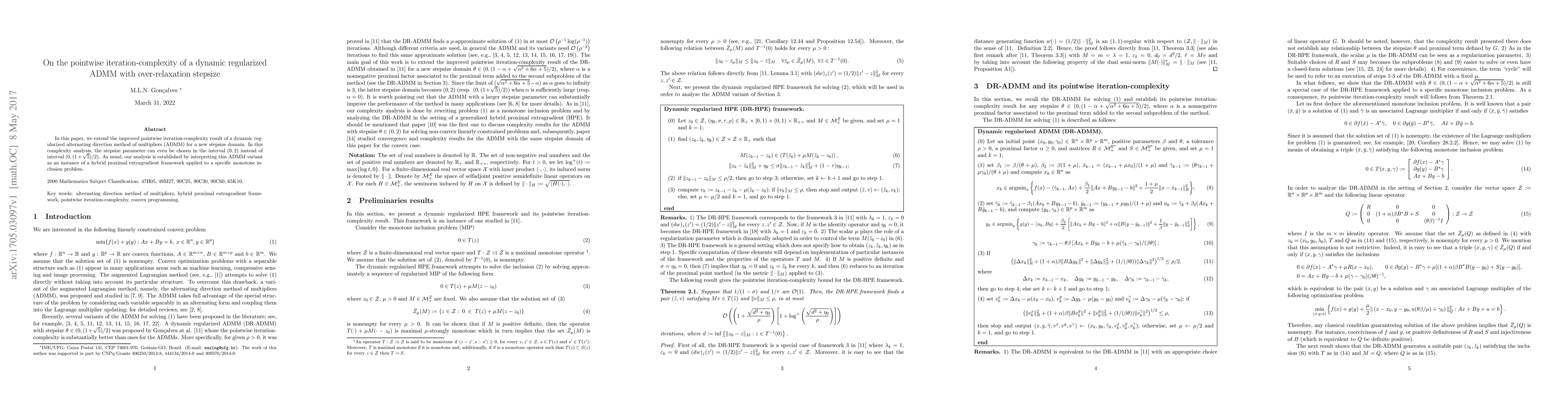 In this paper, we extend the improved pointwise iteration-complexity result of a dynamic regularized alternating direction method of multipliers (ADMM) for a new stepsize domain. In this complexity analysis, the stepsize parameter can even be chosen in the interval $(0,2)$ instead of interval $(0,(1+\sqrt{5})/2)$. As usual, our analysis is established by interpreting this ADMM variant as an instance of a hybrid proximal extragradient framework applied to a specific monotone inclusion problem.