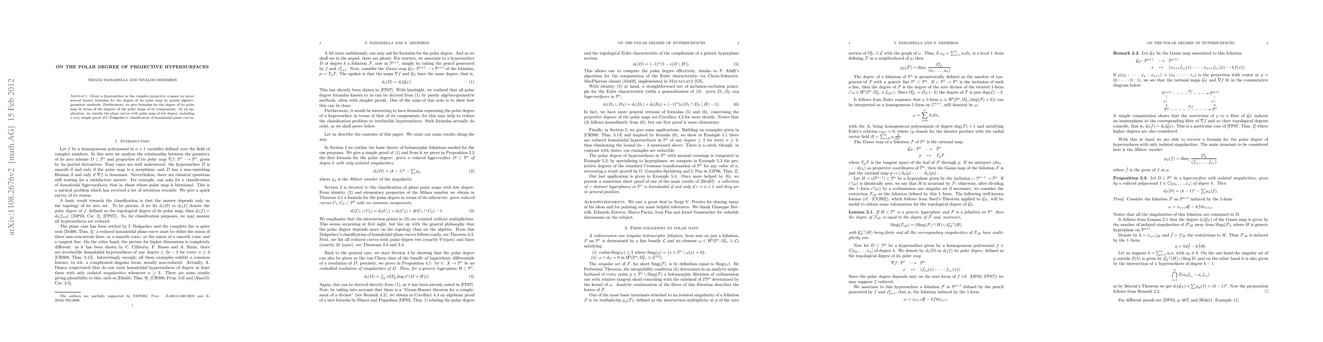 This paper uses algebro-geometric methods to derive formulas for the degree of the polar map of projective hypersurfaces and extends these to components, with an application classifying plane curves with low-degree polar maps, including a proof of Dolgachev's classification of homaloidal plane curves.