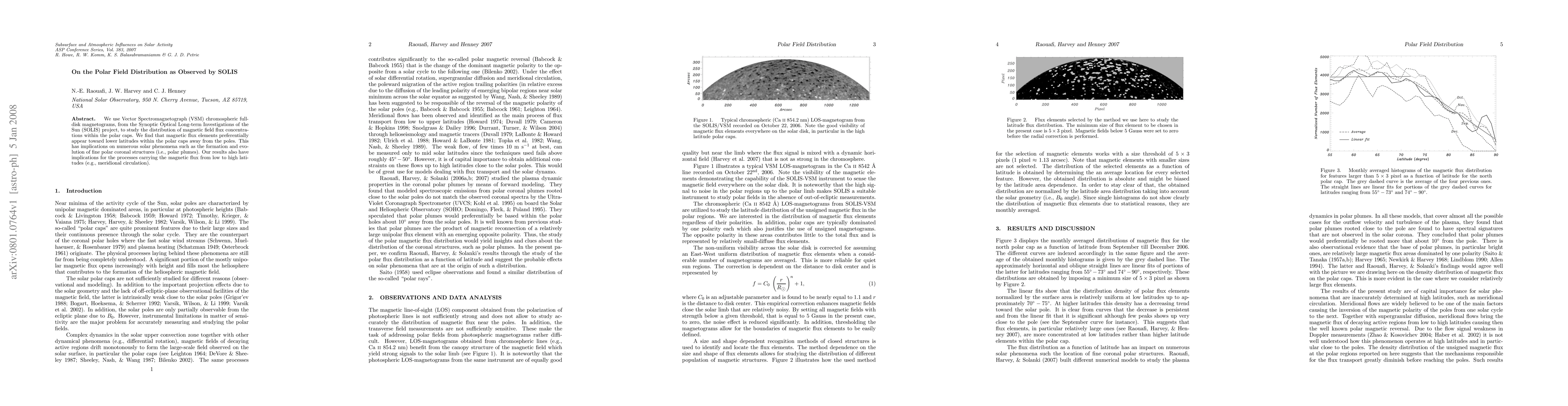 We use Vector Spectromagnetograph (VSM) chromospheric full-disk magnetograms, from the Synoptic Optical Long-term Investigations of the Sun (SOLIS) project, to study the distribution of magnetic field flux concentrations within the polar caps. We find that magnetic flux elements preferentially appear toward lower latitudes within the polar caps away from the poles. This has implications on numerous solar phenomena such as the formation and evolution of fine polar coronal structures (i.e., polar plumes). Our results also have implications for the processes carrying the magnetic flux from low to high latitudes (e.g., meridional circulation).