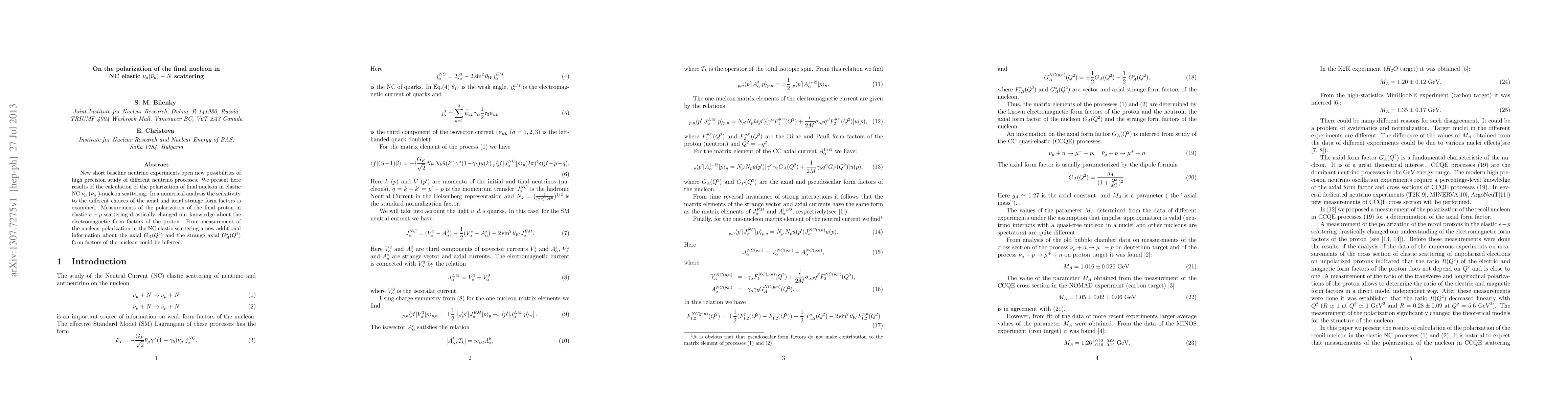 New short baseline neutrino experiments open new possibilities of high precision study of different neutrino processes. We present here results of the calculation of the polarization of final nucleon in elastic NC \nu_\mu (\bar\nu_\mu)-nucleon scattering. In a numerical analysis the sensitivity to the different choices of the axial and axial strange form factors is examined. Measurements of the polarization of the final proton in elastic e-p scattering drastically changed our knowledge about the electromagnetic form factors of the proton. From measurement of the nucleon polarization in the NC elastic scattering a new additional information about the axial G_A(Q^2} and the strange axial G^s_A(Q^2) form factors of the nucleon could be inferred.