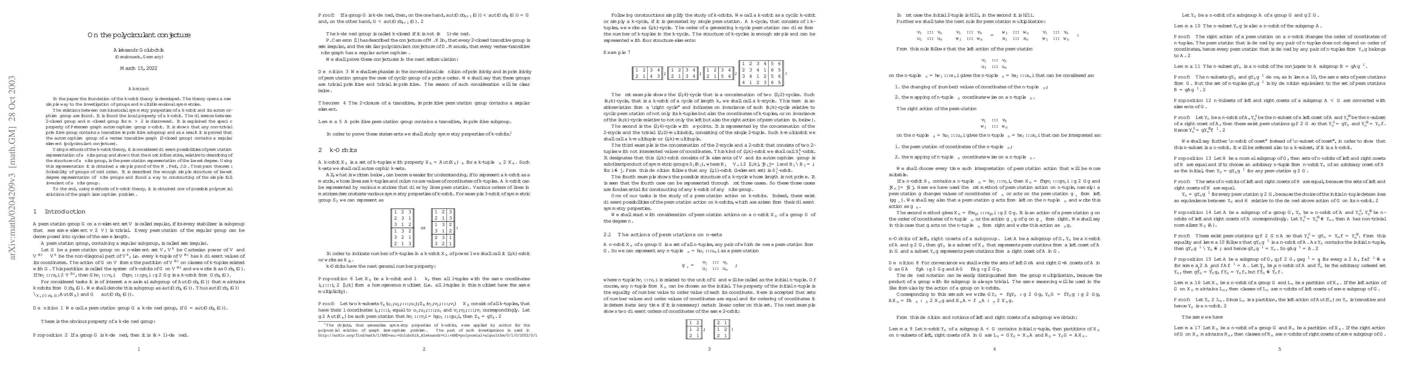 In the paper the foundation of the $k$-orbit theory is developed. The theory opens a new simple way to the investigation of groups and multidimensional symmetries. The relations between combinatorial symmetry properties of a $k$-orbit and its automorphism group are found. It is found the local property of a $k$-orbit. The difference between 2-closed group and $m$-closed group for $m>2$ is discovered. It is explained the specific property of Petersen graph automorphism group $n$-orbit. It is shown that any non-trivial primitive group contains a transitive imprimitive subgroup and as a result it is proved that the automorphism group of a vertex transitive graph (2-closed group) contains a regular element (polycirculant conjecture). Using methods of the $k$-orbit theory, it is considered different possibilities of permutation representation of a finite group and shown that the most informative, relative to describing of the structure of a finite group, is the permutation representation of the lowest degree. Using this representation it is obtained a simple proof of the W. Feit, J.G. Thompson theorem: Solvability of groups of odd order. It is described the enough simple structure of lowest degree representation of finite groups and found a way to constructing of the simple full invariant of a finite group. To the end, using methods of $k$-orbit theory, it is obtained one of possible polynomial solutions of the graph isomorphism problem.