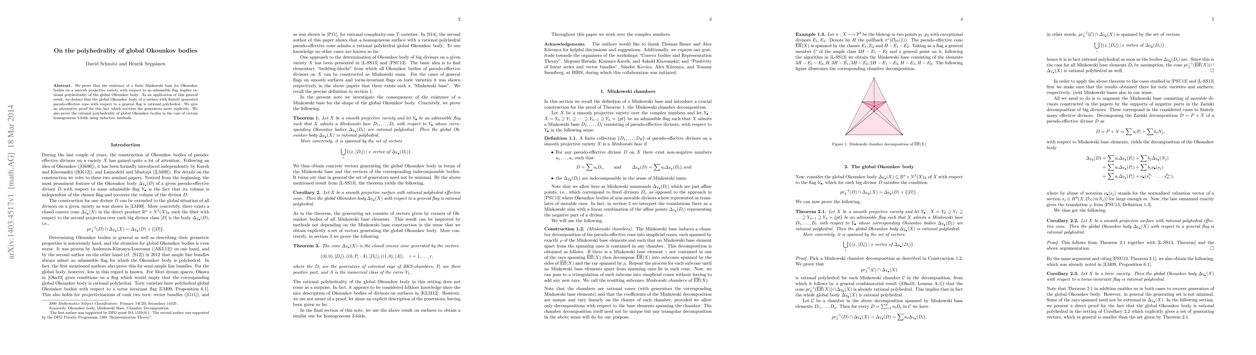 We prove that the existence of a finite Minkowski base for Okounkov bodies on a smooth projective variety with respect to an admissible flag implies rational polyhedrality of the global Okounkov body. As an application of this general result, we deduce that the global Okounkov body of a surface with finitely generated pseudo-effective cone with respect to a general flag is rational polyhedral. We give an alternative proof for this fact which recovers the generators more explicitly. We also prove the rational polyhedrality of global Okounkov bodies in the case of certain homogeneous 3-folds using inductive methods.