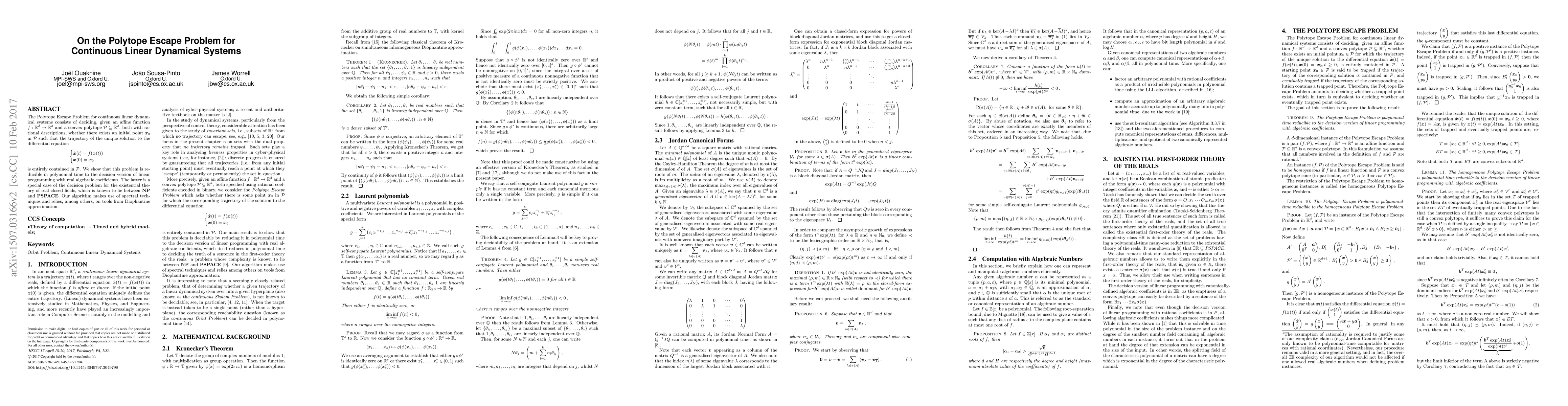 This paper addresses the Polyhedral Escape Problem for continuous linear dynamical systems, proving its decidability by reducing it to the decision version of linear programming. The algorithm employs spectral techniques and tools from Diophantine approximation, placing the problem in the complexity class $\exists \mathbb{R}$.