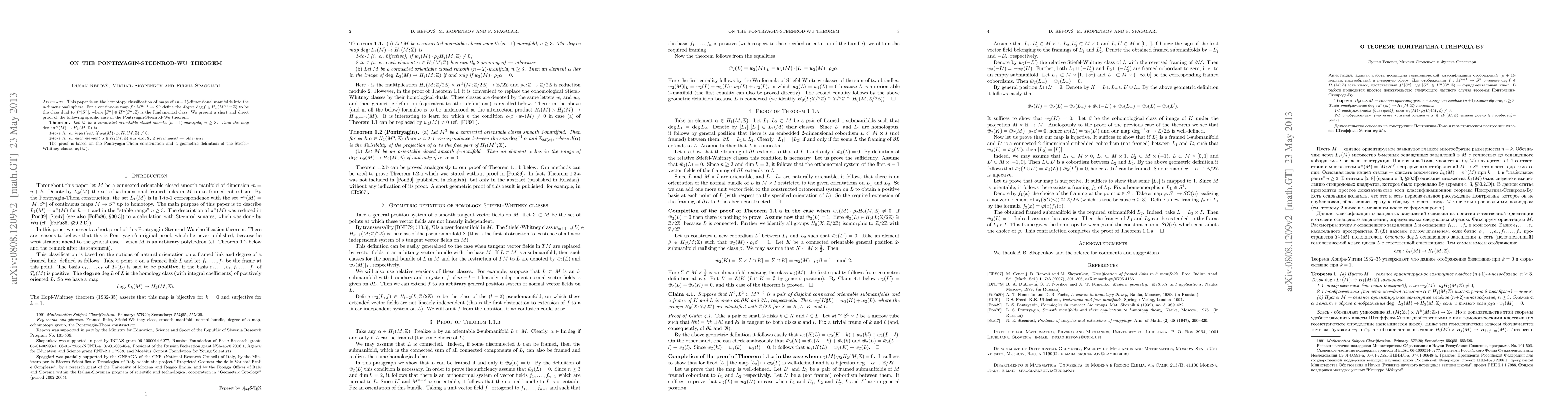 This paper is on homotopy classification of maps of (n+1)-dimensional manifolds into the n-dimensional sphere. For a continuous map f of an (n+1)-manifold into the n-sphere define the degree deg f to be the class dual to f^*[S^n], where [S^n] is the fundamental class. We present a short and direct proof of the following specific case of the Pontryagin-Steenrod-Wu theorem: Theorem. Let M be a connected orientable closed smooth (n+1)-manifold, n>2. Then the map deg:\pi^n(M)\to H_1(M;Z) is 1-to-1 (i.e., bijective), if the product w_2(M) x r_2 H_2(M;Z) is nonzero, where r_2 is the mod2 reduction; 2-to-1 (i.e., each element of H_1(M;Z) has exactly 2 preimages) - otherwise. The proof is based on the Pontryagin-Thom construction and a geometric definition of the Stiefel-Whitney classes w_2(M).