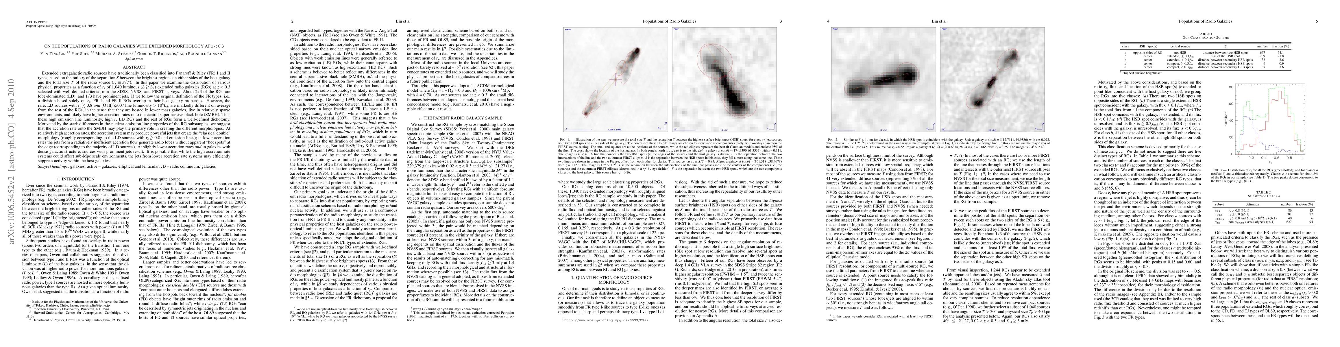 Extended extragalactic radio sources have traditionally been classified into FR I and II types, based on the ratio r of the separation S between the brightest regions on either sides of the host galaxy and the total size T of the radio source. Here we examine the distribution of various physical properties as a function of r of 1040 luminous radio galaxies (RGs) at z<0.3 from the SDSS, NVSS, and FIRST. About 2/3 of the RGs are lobe-dominated (LD), and 1/3 have prominent jets. If we follow the original definition of the FR types (a division based solely on r), FR I and FR II RGs overlap in their host galaxy properties. However, the rare, LD sources with r>0.8 AND OIII5007 line luminosity >10^6 Lsun are markedly different on average from the rest of the RGs, in the sense that they are hosted in lower mass galaxies, live in relatively sparse environments, and have higher accretion rates onto the central SMBH. Thus these objects and the rest of RGs form a well-defined dichotomy. Motivated by the stark differences in the nuclear emission line properties of the RG subsamples, we suggest that the accretion rate onto the SMBH may play the primary role in creating the different morphologies. At relatively high accretion rates, the accretion system may produce powerful jets that create the "classical double" morphology (roughly corresponding to the LD sources with r>0.8 and emission lines); at lower accretion rates the jets from a radiatively inefficient accretion flow generate radio lobes without apparent "hot spots" at the edge (corresponding to the majority of LD sources). At slightly lower accretion rates AND in galaxies with dense galactic structure, sources with prominent jets result. It is possible that while the high accretion rate systems could affect sub-Mpc scale environments, the jets from lower accretion rate systems may efficiently suppress activity within the host galaxies.