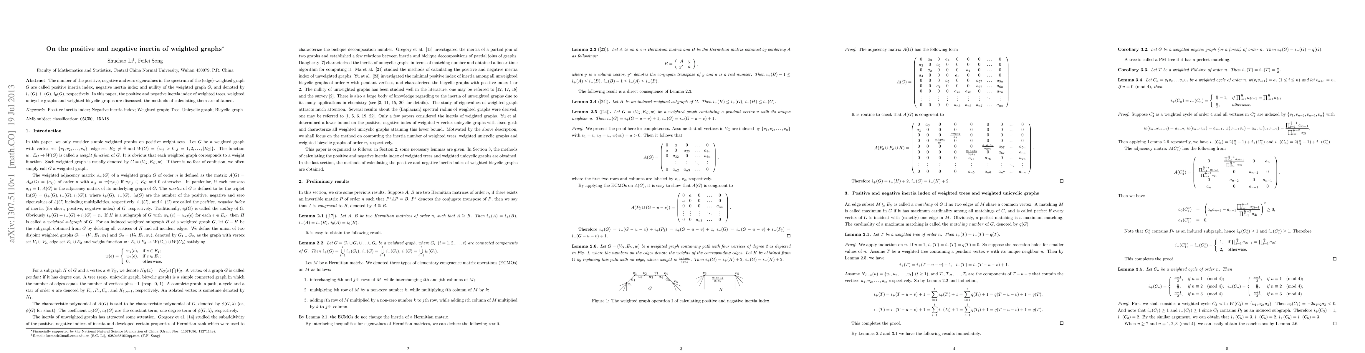 This paper investigates the positive and negative inertia indices in the spectra of weighted graphs, specifically focusing on weighted trees, unicyclic, and bicyclic graphs, and provides methods for calculating these indices.