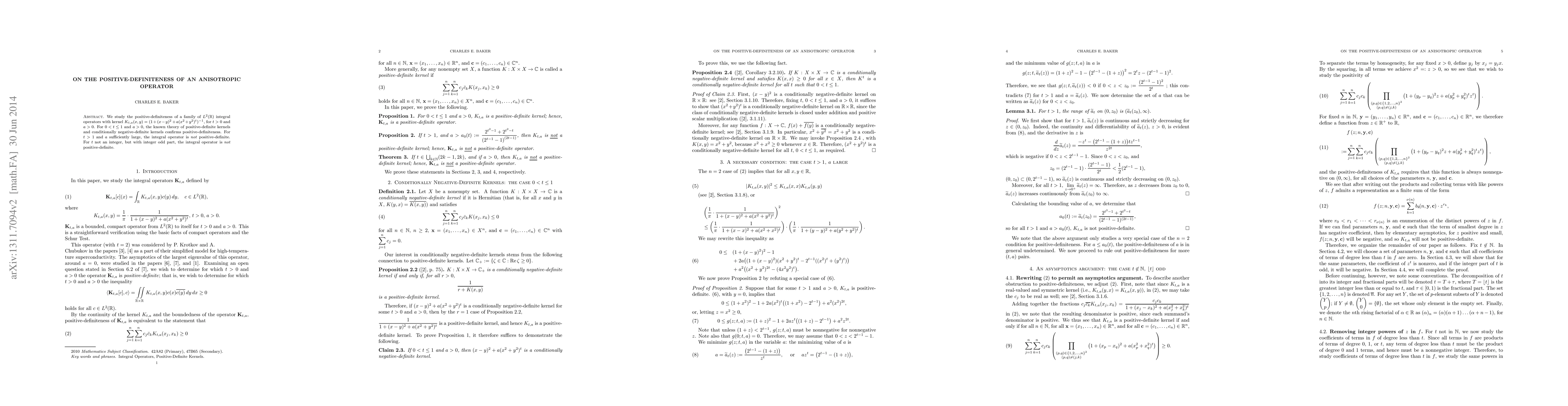 Researchers investigate the positive-definiteness of a family of integral operators with a specific kernel function, finding that some constructions disprove positive-definiteness for certain parameters, while others ensure it when 0 < t <= 1.