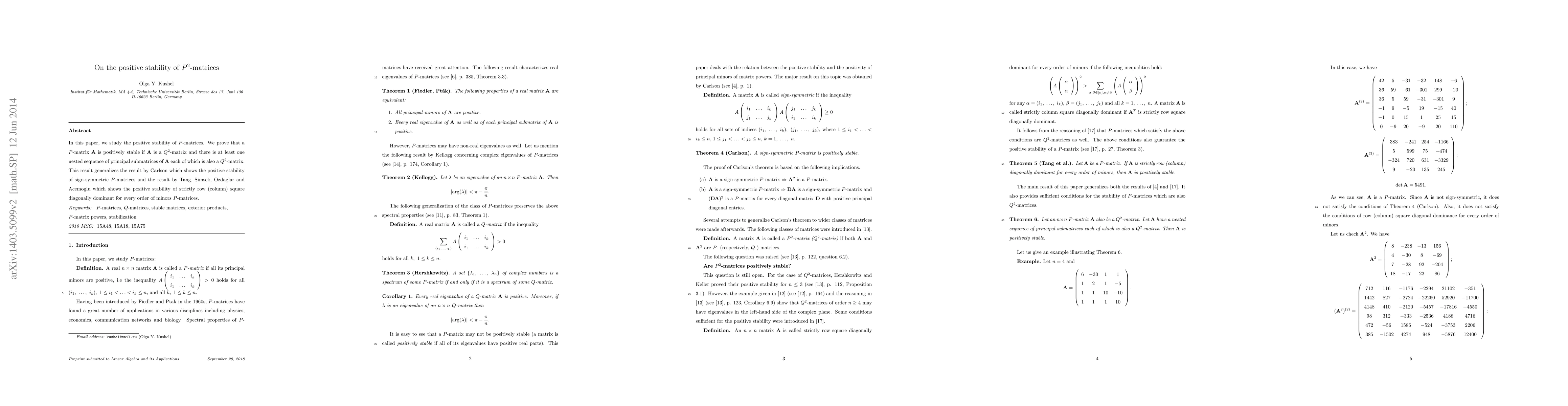 A new study proves that a $P$-matrix is positively stable if it is also a $Q^2$-matrix with at least one nested sequence of principal submatrices that are $Q^2$-matrices. This generalizes previous results on positive stability for specific types of matrices.