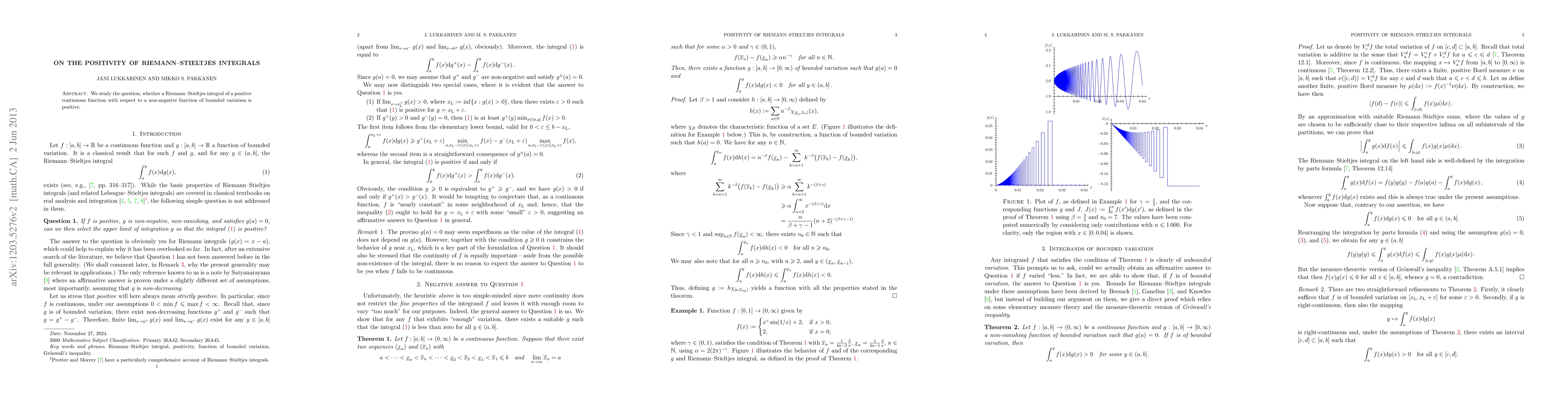 We study the question, whether a Riemann-Stieltjes integral of a positive continuous function with respect to a non-negative function of bounded variation is positive.