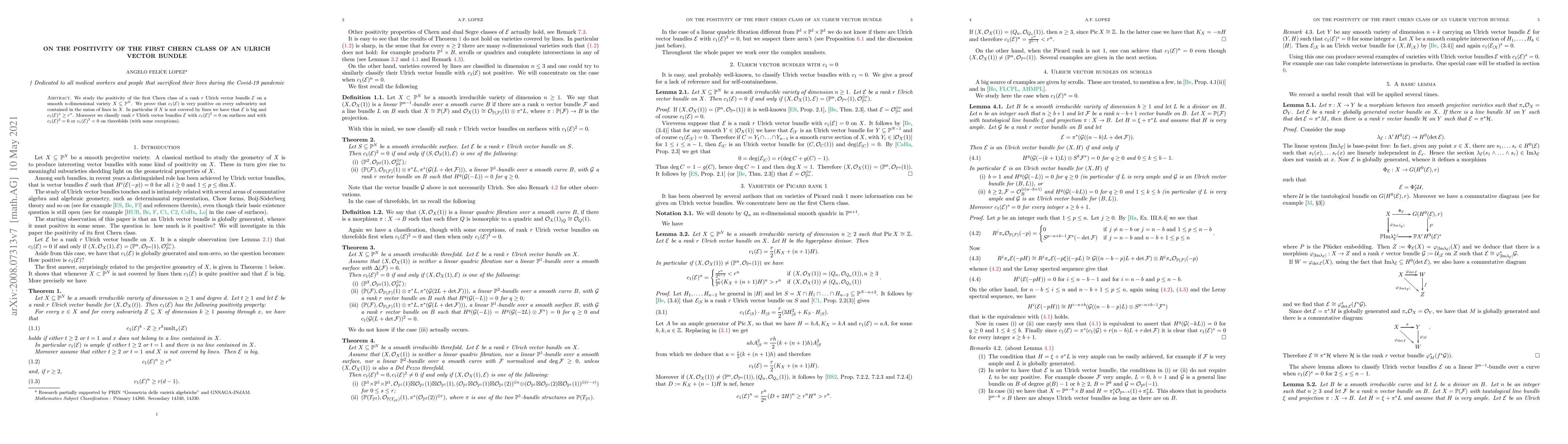 We study the positivity of the first Chern class of a rank r Ulrich vector bundle E on a smooth n-dimensional variety $X \subseteq \mathbb P^N$. We prove that $c_1(E)$ is very positive on every subvariety not contained in the union of lines in X. In particular if X is not covered by lines, then E is big and $c_1(E)^n \ge r^n$. Moreover we classify rank r Ulrich vector bundles E with $c_1(E)^2=0$ on surfaces and with $c_1(E)^2=0$ or $c_1(E)^3=0$ on threefolds (with some exceptions).