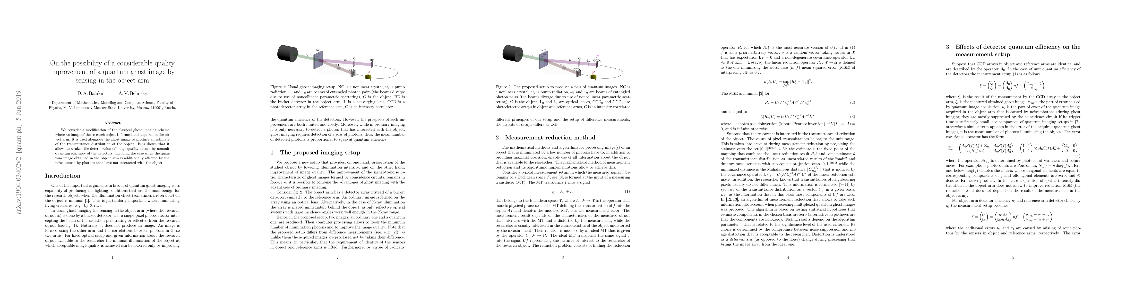 We consider a modification of the classical ghost imaging scheme where an image of the research object is formed and acquired in the object arm. It is used alongside the ghost image to produce an estimate of the transmittance distribution of the object. It is shown that it allows to weaken the deterioration of image quality caused by nonunit quantum efficiency of the sensors, including the case when the quantum image obtained in the object arm is additionally affected by the noise caused by photons that have not interacted with the object.