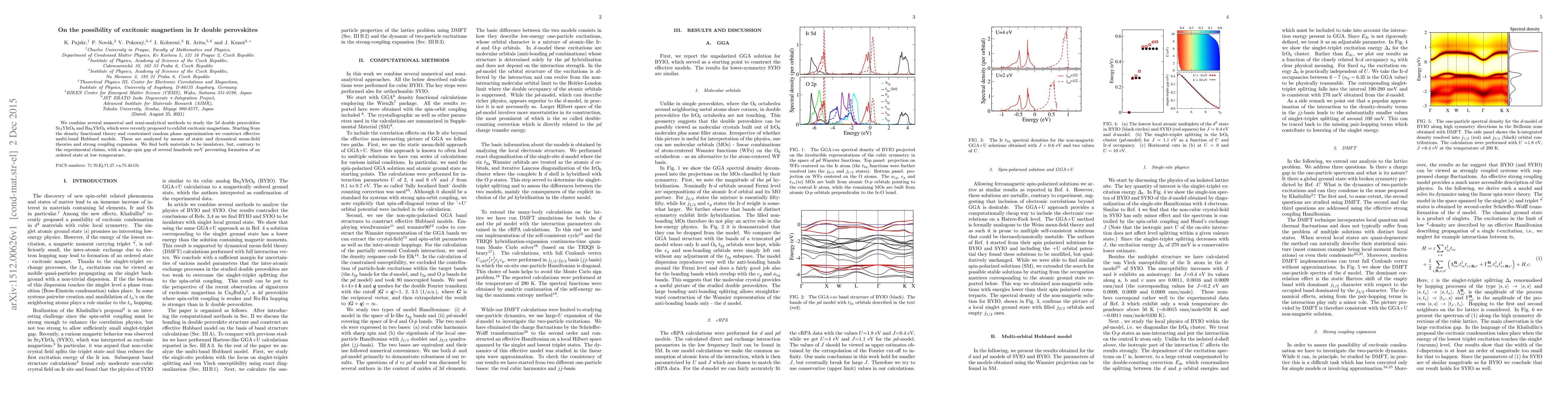 This study uses density functional theory and random phase approximation to analyze Sr2YIRO6 and Ba2YIRO6, proposed excitonic magnetism materials. Despite initial claims, both are found to be insulators with a large spin gap, making ordered low-temperature states unlikely.