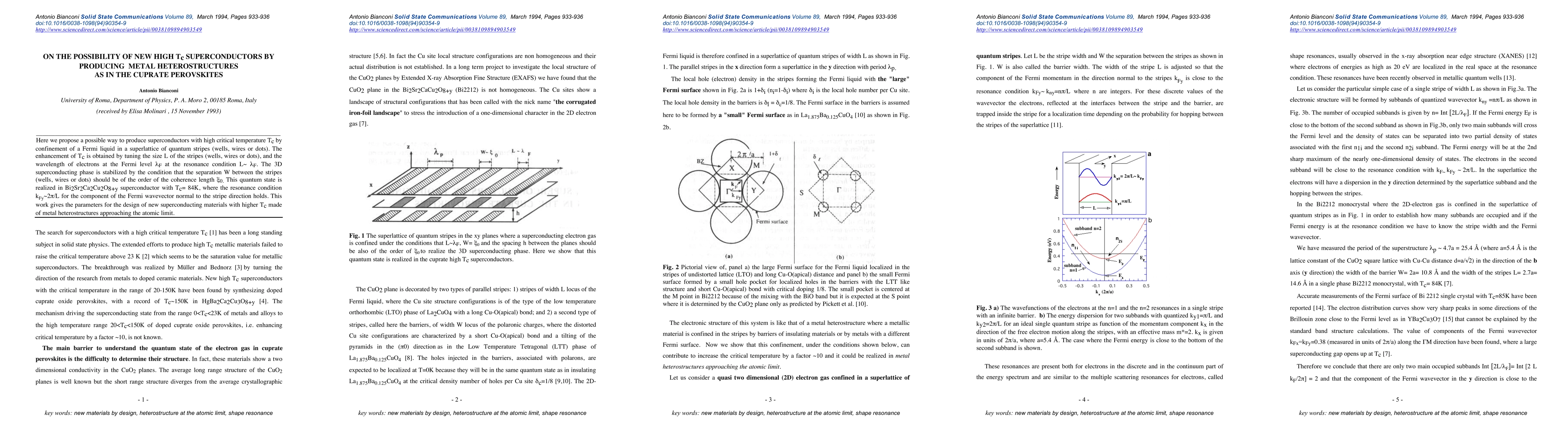 Here we propose a possible way to produce superconductors with high critical temperature Tc by confinement of a Fermi liquid in a superlattice of quantum stripes (wells, wires or dots). The enhancement of Tc is obtained by tuning the size L of the stripes (wells, wires or dots), and the wavelength of electrons at the Fermi level {\lambda}F at the resonance condition L {\lambda}F. The 3D superconducting phase is stabilized by the condition that the separation W between the stripes (wells, wires or dots) should be of the order of the coherence length {\xi}0. This quantum state is realized in Bi2Sr2Ca2Cu2O8+y superconductor with Tc= 84K, where the resonance condition kFy~2{\pi}/L for the component of the Fermi wavevector normal to the stripe direction holds. This work gives the parameters for the design of new superconducting materials with higher Tc made of metal heterostructures approaching the atomic limit.