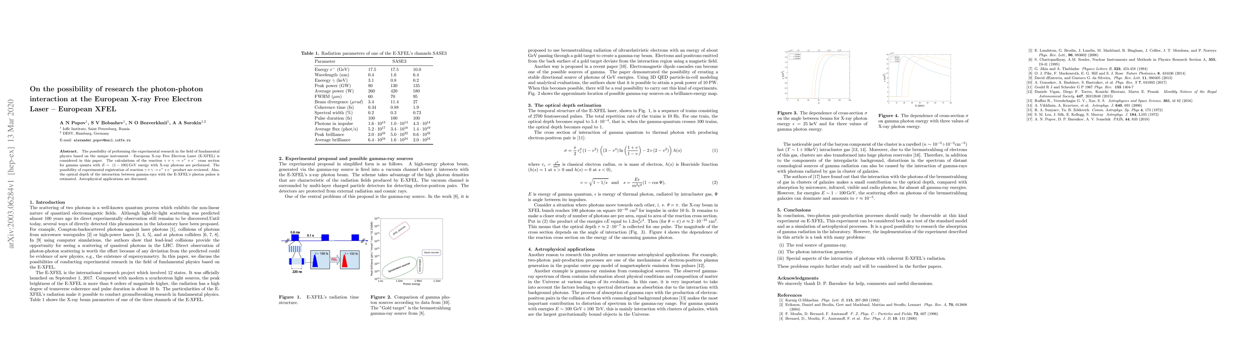 This paper explores the feasibility of photon-photon interaction experiments using the European X-ray Free Electron Laser (E-XFEL), calculating the cross section for the reaction $\gamma + \gamma \to e^{+} + e^{-}$ and assessing the potential for experimental detection, alongside discussing astrophysical implications.