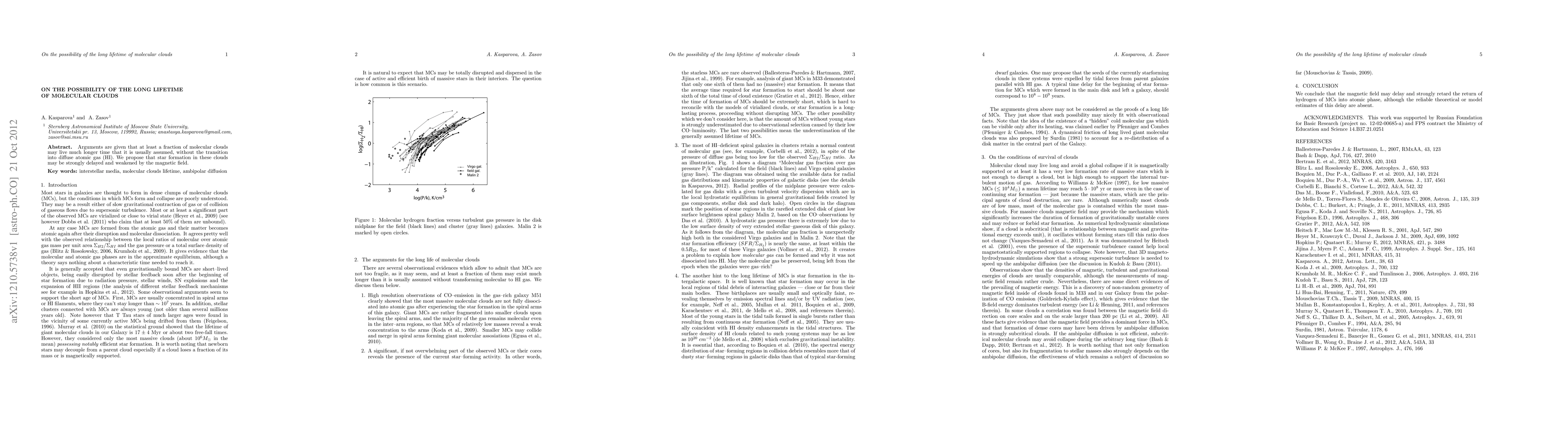 Summary: The paper suggests that some molecular clouds may persist for much longer than previously thought without transitioning into diffuse atomic gas, proposing that magnetic fields can significantly delay and weaken star formation in these clouds.