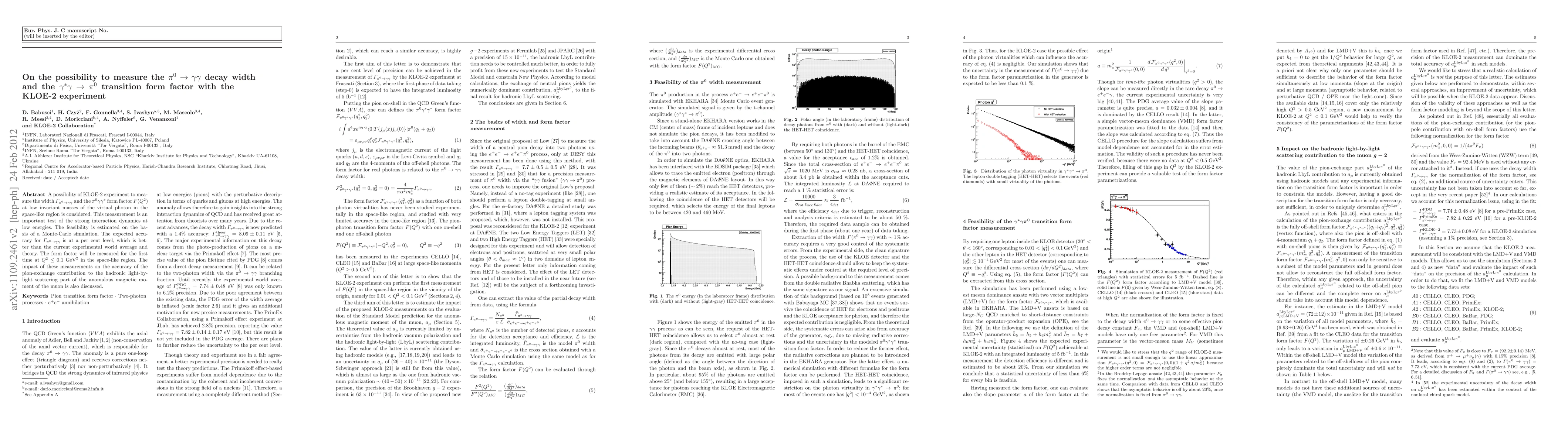 The KLOE-2 experiment can measure the pi0 to gamma gamma decay width and the pi0 gamma gamma* form factor with high accuracy, potentially improving our understanding of strong interaction dynamics at low energies.