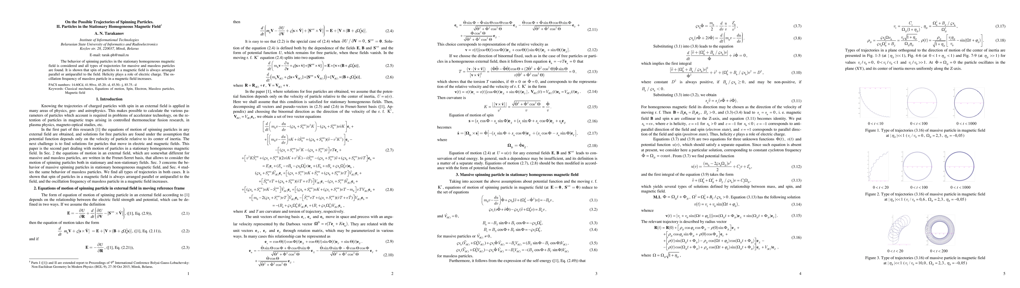Summary: This paper investigates the trajectories of spinning particles in a stationary homogeneous magnetic field, revealing that particle spin aligns parallel or antiparallel to the field. It also finds that helicity functions similarly to electric charge, and massless particles experience an increased oscillation frequency in the magnetic field.