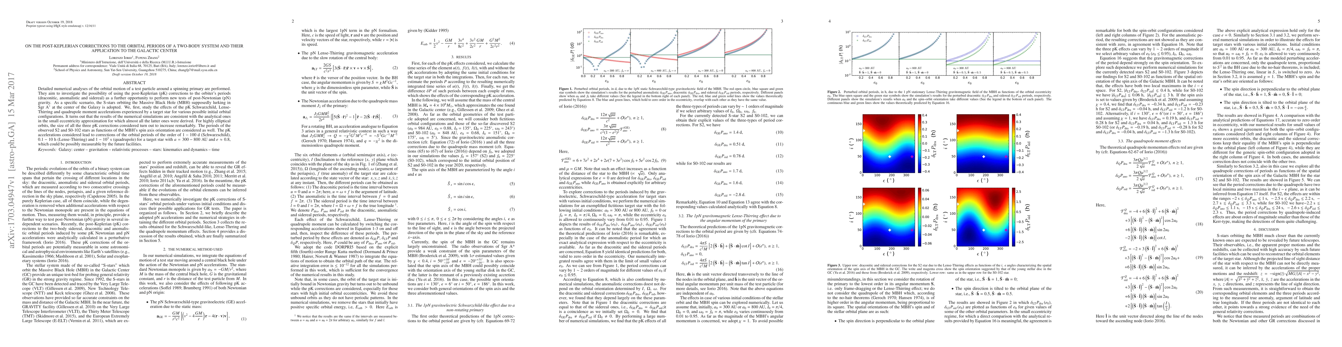 Detailed numerical analyses of the orbital motion of a test particle around a spinning primary are performed. They aim to investigate the possibility of using the post-Keplerian (pK) corrections to the orbiter's periods (draconitic, anomalistic and sidereal) as a further opportunity to perform new tests of post-Newtonian (pN) gravity. As a specific scenario, the S-stars orbiting the Massive Black Hole (MBH) supposedly lurking in Sgr A$^\ast$ at the center of the Galaxy is adopted. We, first, study the effects of the pK Schwarzchild, Lense-Thirring and quadrupole moment accelerations experienced by a target star for various possible initial orbital configurations. It turns out that the results of the numerical simulations are consistent with the analytical ones in the small eccentricity approximation for which almost all the latter ones were derived. For highly elliptical orbits, the size of all the three pK corrections considered turn out to increase remarkably. The periods of the observed S2 and S0-102 stars as functions of the MBH's spin axis orientation are considered as well. The pK accelerations considered lead to corrections of the orbital periods of the order of 1-100d (Schwarzschild), 0.1-10h (Lense-Thirring) and 1-10^3s (quadrupole) for a target star with a=300-800~AU and e ~ 0.8, which could be possibly measurable by the future facilities.