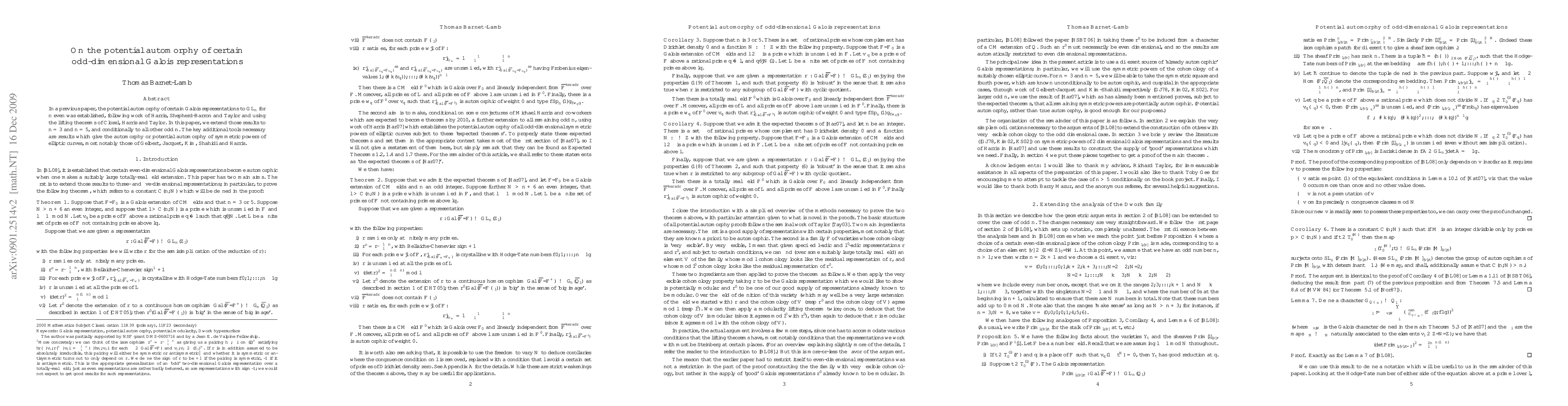 This paper extends the potential automorphy of certain Galois representations to dimensions 3 and 5, and conditionally to all other odd dimensions, building on previous work and leveraging new results on the automorphy of symmetric powers of elliptic curves. Key contributions come from Gelbert, Jacquet, Kim, Shahidi, and Harris.