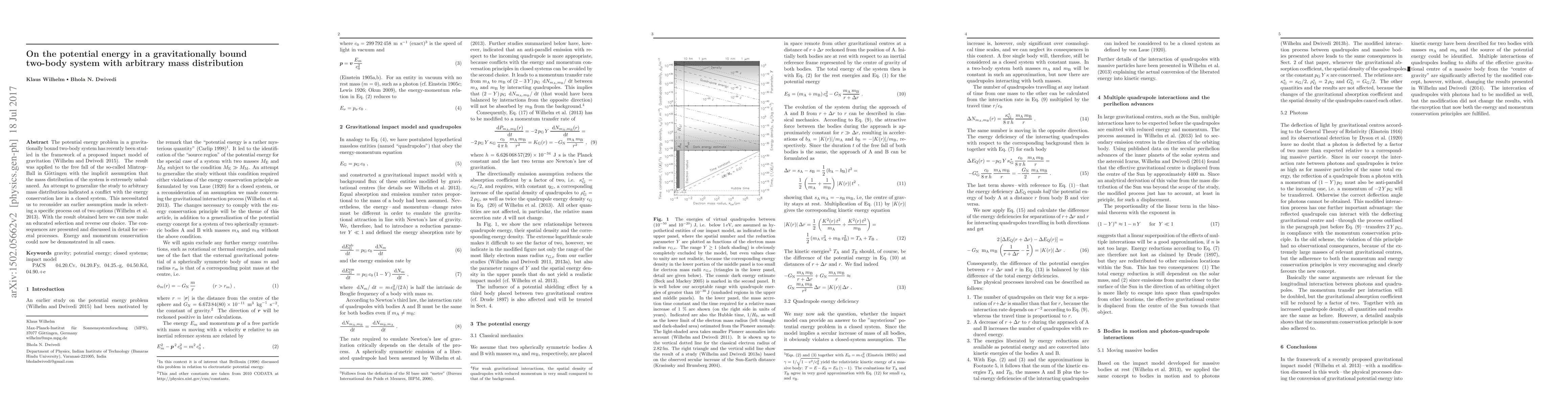 This paper revisits the potential energy problem in a gravitationally bound two-body system, initially studied under an impact model of gravitation. The authors resolve a conflict with energy conservation, previously found when considering arbitrary mass distributions. They reconsider an earlier assumption, enabling demonstration of energy and momentum conservation in various processes.