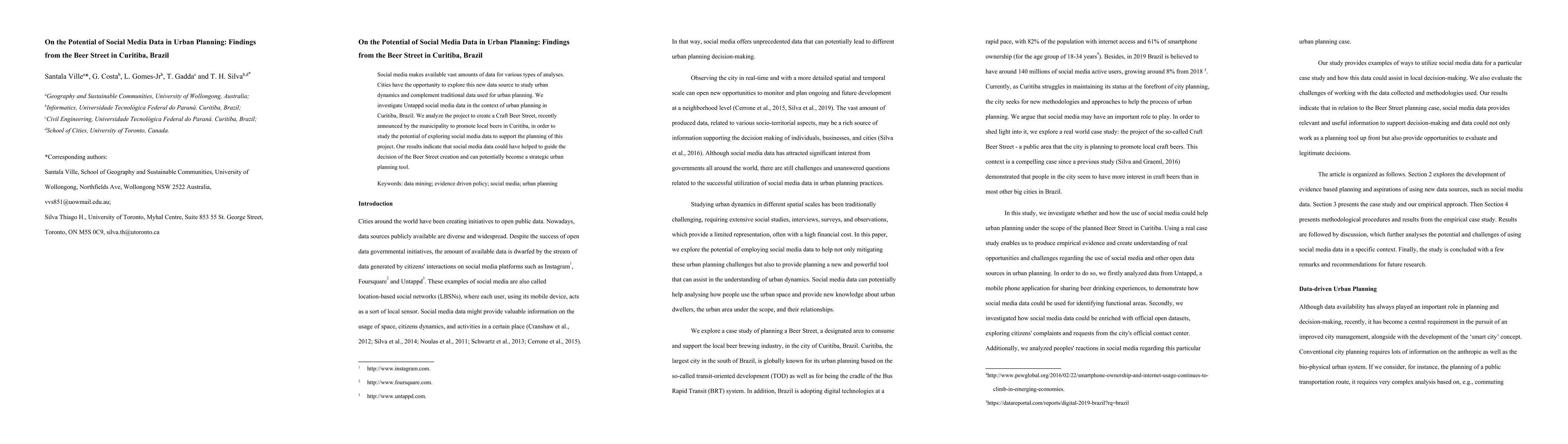 This study explores the use of Untappd social media data to support urban planning in Curitiba, Brazil, specifically for a new Craft Beer Street project. The findings suggest that social media data can effectively guide urban planning decisions and may serve as a strategic tool for future initiatives.
