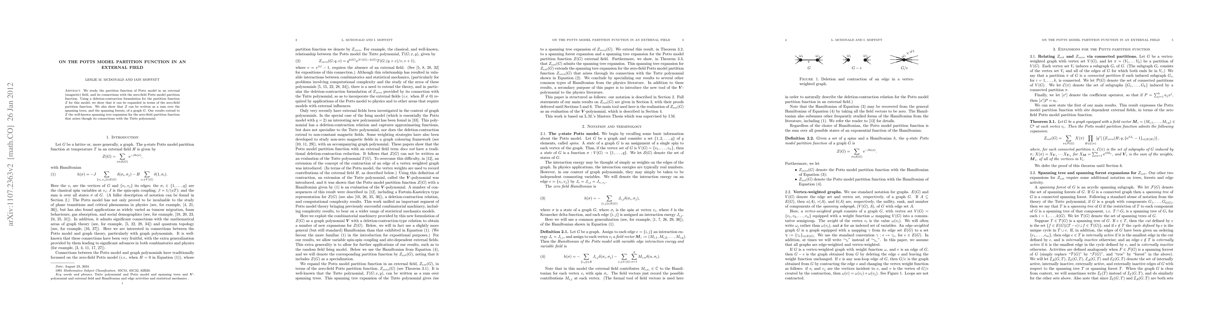This paper investigates the partition function of the Potts model under an external magnetic field, demonstrating its expansion in terms of the zero-field partition function. It also establishes a connection between the partition function and spanning trees and forests of a graph, extending the known spanning tree expansion to the external field case.