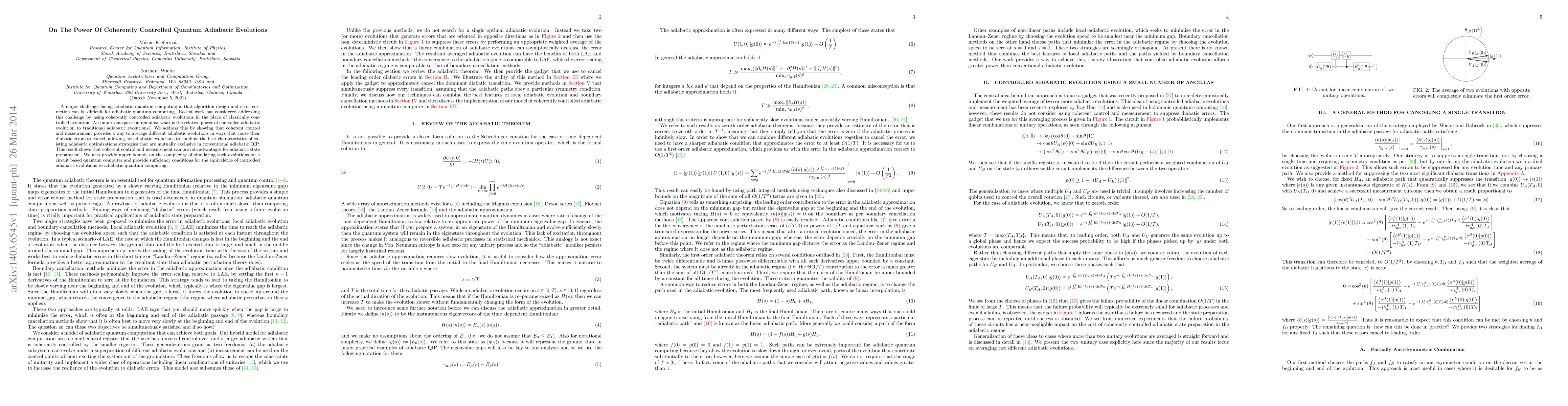 A major challenge facing adiabatic quantum computing is that algorithm design and error correction can be difficult for adiabatic quantum computing. Recent work has considered addressing his challenge by using coherently controlled adiabatic evolutions in the place of classically controlled evolution. An important question remains: what is the relative power of controlled adiabatic evolution to traditional adiabatic evolutions? We address this by showing that coherent control and measurement provides a way to average different adiabatic evolutions in ways that cause their diabatic errors to cancel, allowing for adiabatic evolutions to combine the best characteristics of existing adiabatic optimizations strategies that are mutually exclusive in conventional adiabatic QIP. This result shows that coherent control and measurement can provide advantages for adiabatic state preparation. We also provide upper bounds on the complexity of simulating such evolutions on a circuit based quantum computer and provide sufficiency conditions for the equivalence of controlled adiabatic evolutions to adiabatic quantum computing.