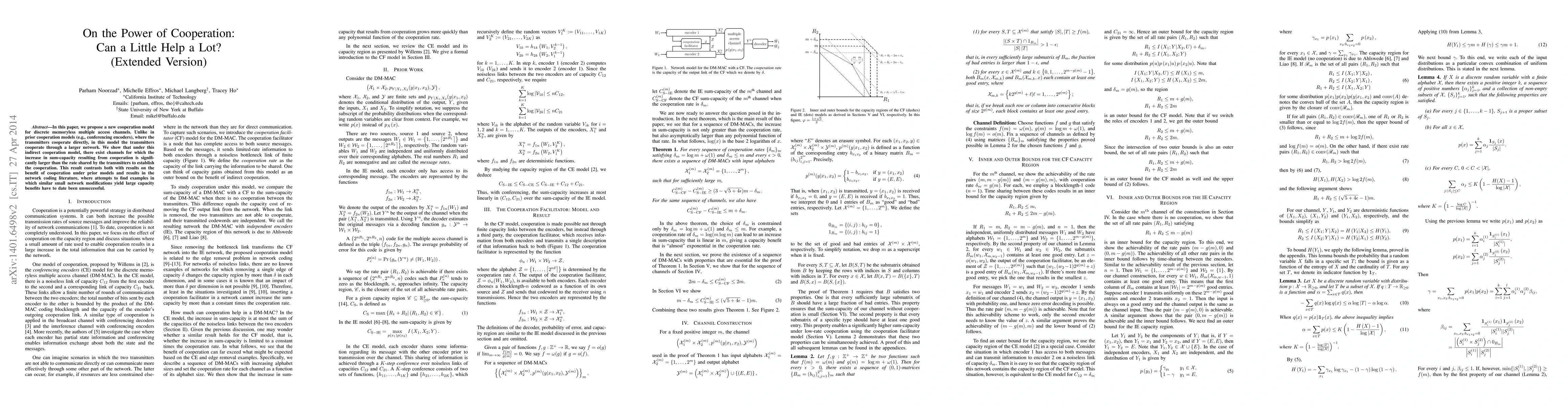 This paper introduces a novel cooperation model for discrete memoryless multiple access channels, where transmitters cooperate indirectly via a larger network. It demonstrates that this indirect cooperation can significantly enhance sum-capacity, often more than the rate used to establish cooperation, contrasting with prior direct cooperation models and network coding studies.