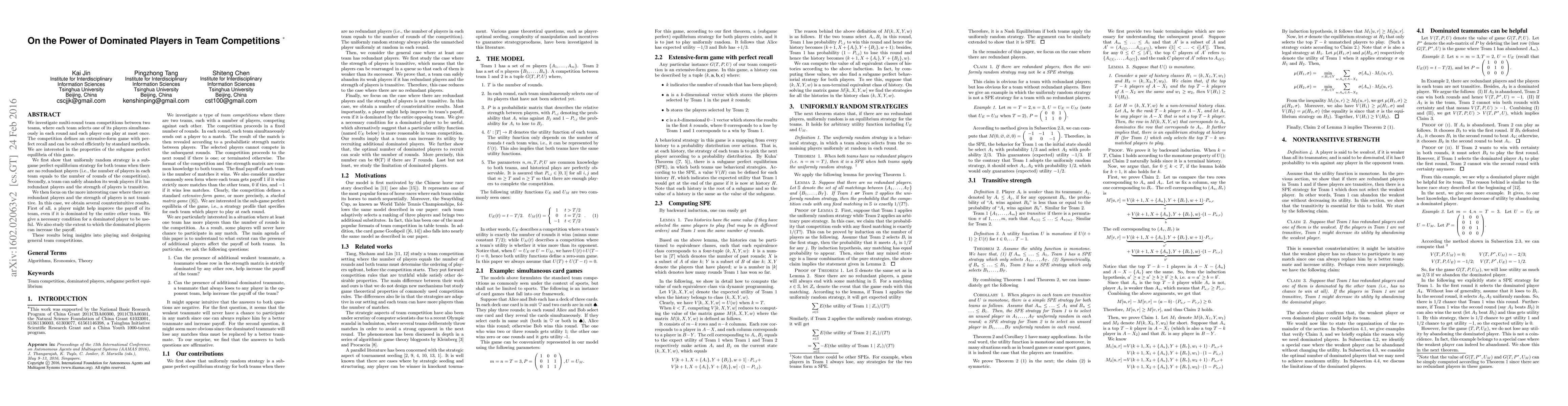 This paper explores multi-round team competitions where teams select players in each round, focusing on the subgame perfect equilibria. It finds that random strategies are optimal when no players are redundant, but dominated players can still enhance team performance when player strengths are not transitive, defying intuitive expectations.