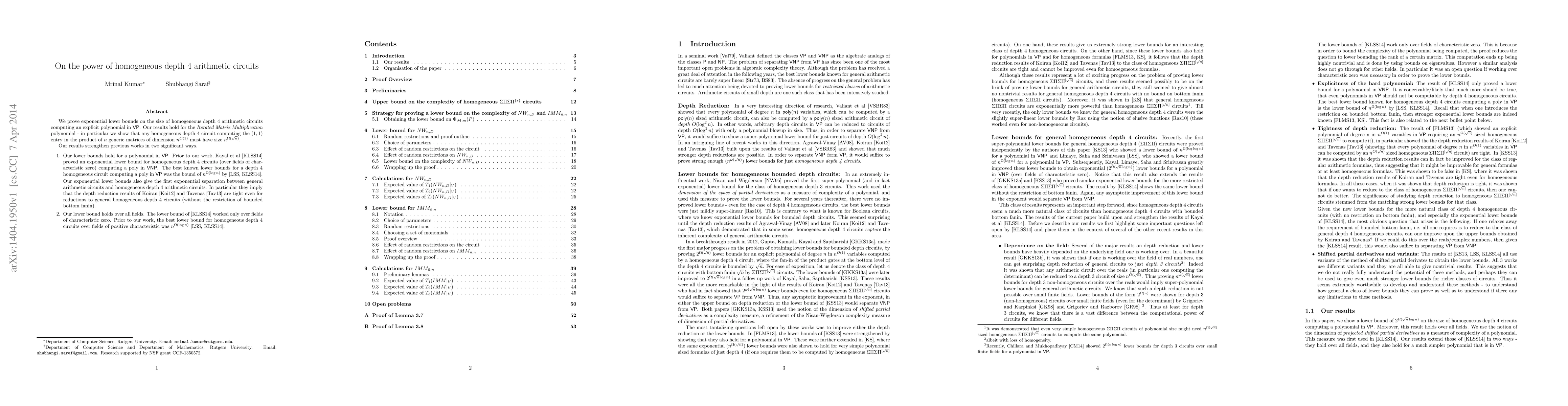 The paper introduces novel techniques for proving exponential lower bounds on homogeneous depth 4 arithmetic circuits, specifically for the Iterated Matrix Multiplication polynomial, over all fields.