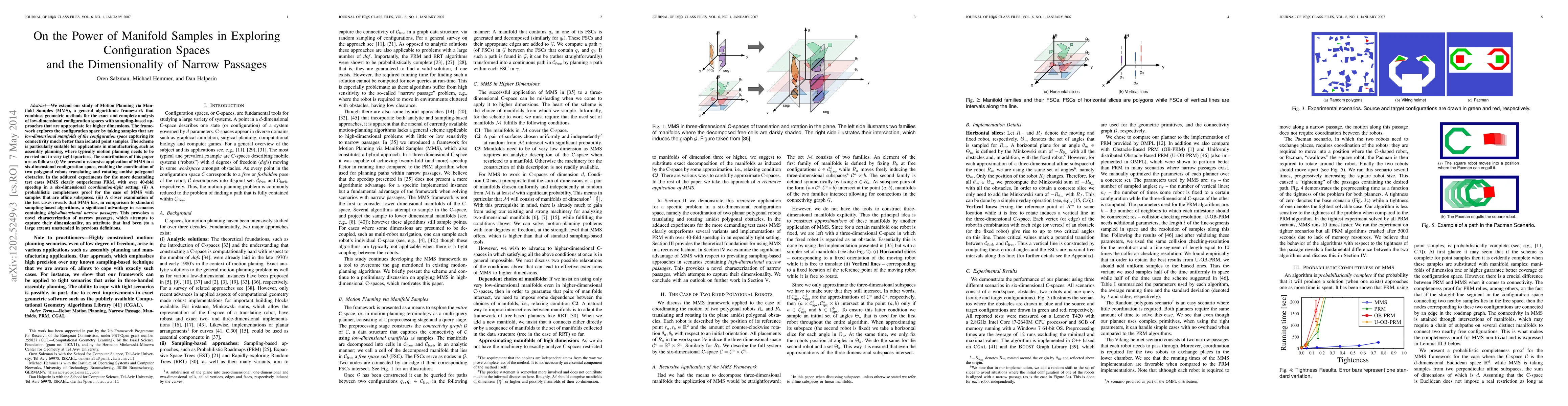 We extend our study of Motion Planning via Manifold Samples (MMS), a general algorithmic framework that combines geometric methods for the exact and complete analysis of low-dimensional configuration spaces with sampling-based approaches that are appropriate for higher dimensions. The framework explores the configuration space by taking samples that are entire low-dimensional manifolds of the configuration space capturing its connectivity much better than isolated point samples. The contributions of this paper are as follows: (i) We present a recursive application of MMS in a six-dimensional configuration space, enabling the coordination of two polygonal robots translating and rotating amidst polygonal obstacles. In the adduced experiments for the more demanding test cases MMS clearly outperforms PRM, with over 20-fold speedup in a coordination-tight setting. (ii) A probabilistic completeness proof for the most prevalent case, namely MMS with samples that are affine subspaces. (iii) A closer examination of the test cases reveals that MMS has, in comparison to standard sampling-based algorithms, a significant advantage in scenarios containing high-dimensional narrow passages. This provokes a novel characterization of narrow passages which attempts to capture their dimensionality, an attribute that had been (to a large extent) unattended in previous definitions.