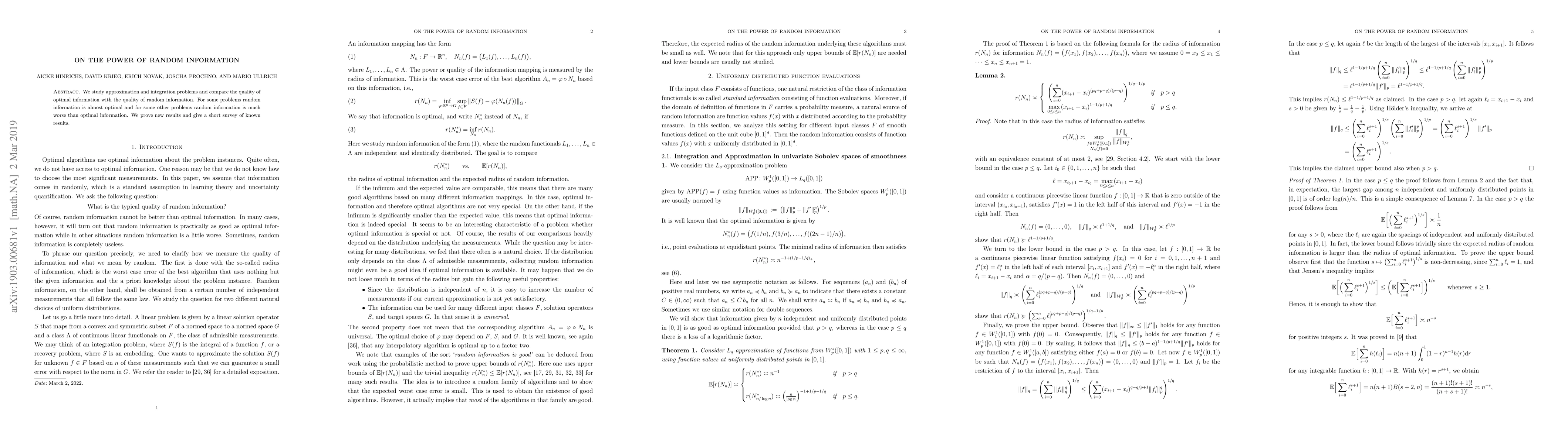We study approximation and integration problems and compare the quality of optimal information with the quality of random information. For some problems random information is almost optimal and for some other problems random information is much worse than optimal information. We prove new results and give a short survey of known results.