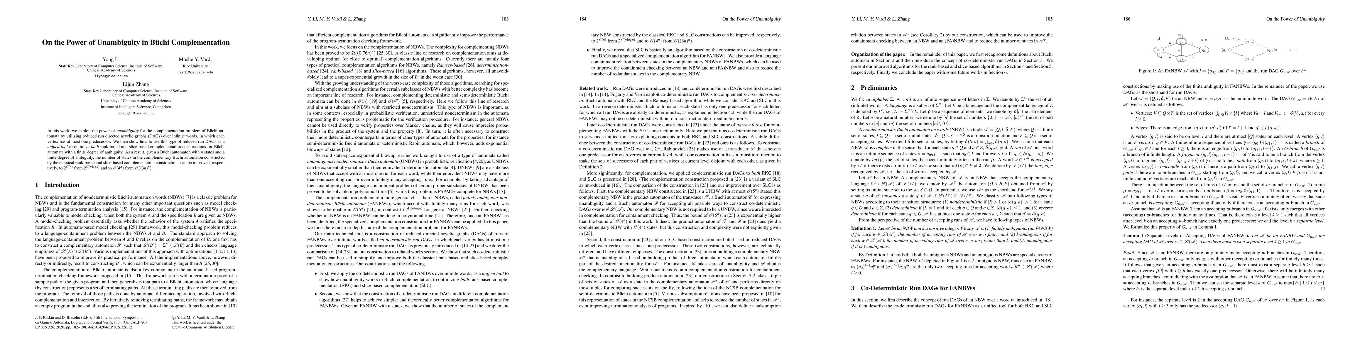 This paper leverages unambiguity through reduced run DAGs to optimize the complementation of B\"uchi automata, improving state counts in rank-based and slice-based constructions from $2^{O(n\log n)}$ and $O((3n)^n)$ to $2^{O(n)}$ and $O(4^n)$, respectively.
