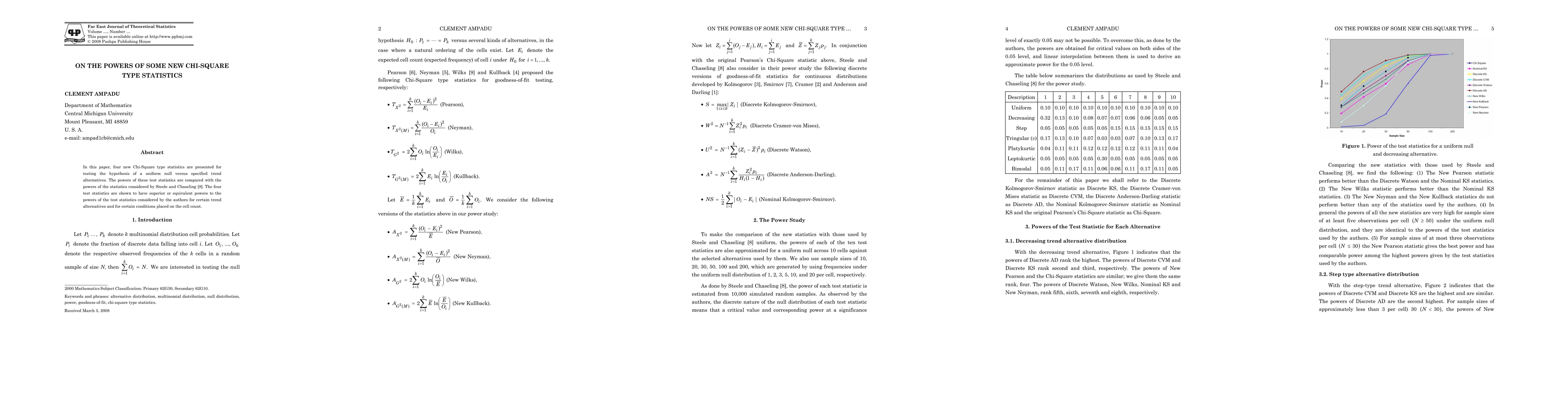 In this paper, four new Chi-Square type statistics are presented for testing the hypothesis of a uniform null versus specified trend alternatives. The powers of these test statistics are compared with the powers of the statistics considered by Steele and Chaseling [8]. The four test statistics are shown to have superior or equivalent powers to the powers of the test statistics considered by the authors for certain trend alternatives and for certain conditions placed on the cell count.