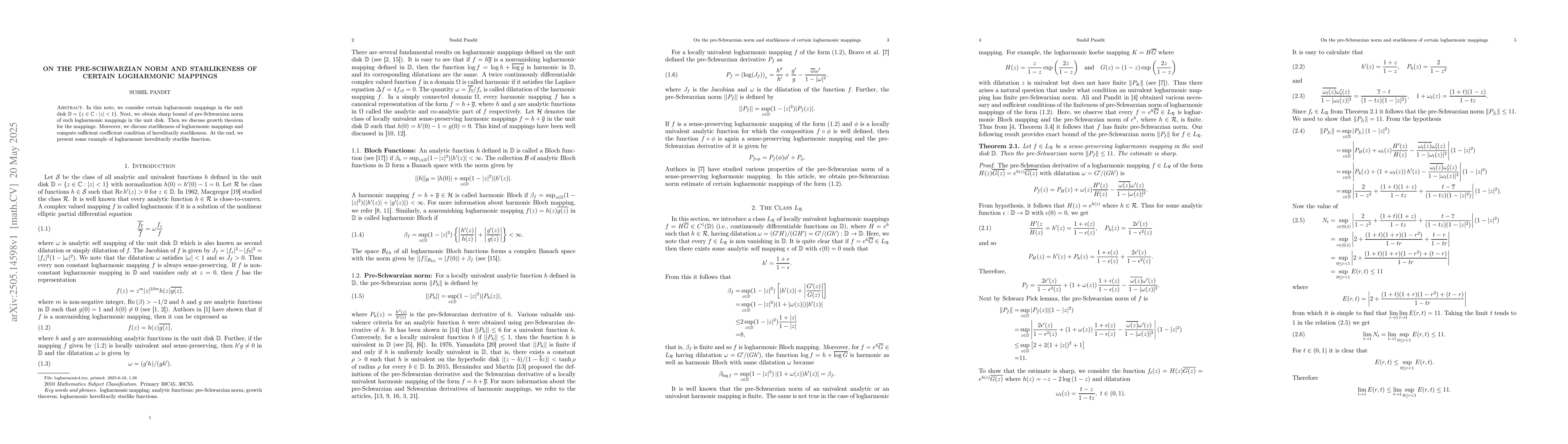The paper presents sharp bounds for the pre-Schwarzian norm and discusses growth and starlikeness conditions for logharmonic mappings, contributing novel theoretical results to the field.