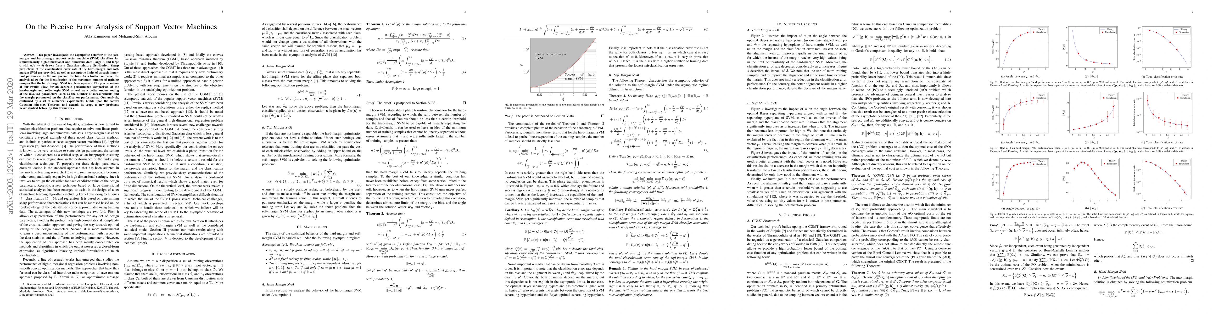 This paper provides sharp predictions on the error rates and asymptotic limits of parameters for hard-margin and soft-margin SVM classifiers in high-dimensional data scenarios, allowing for a precise performance comparison and better understanding of classification parameters. Numerical experiments confirm the analysis, extending the convex Gaussian min-max Theorem to new problems.