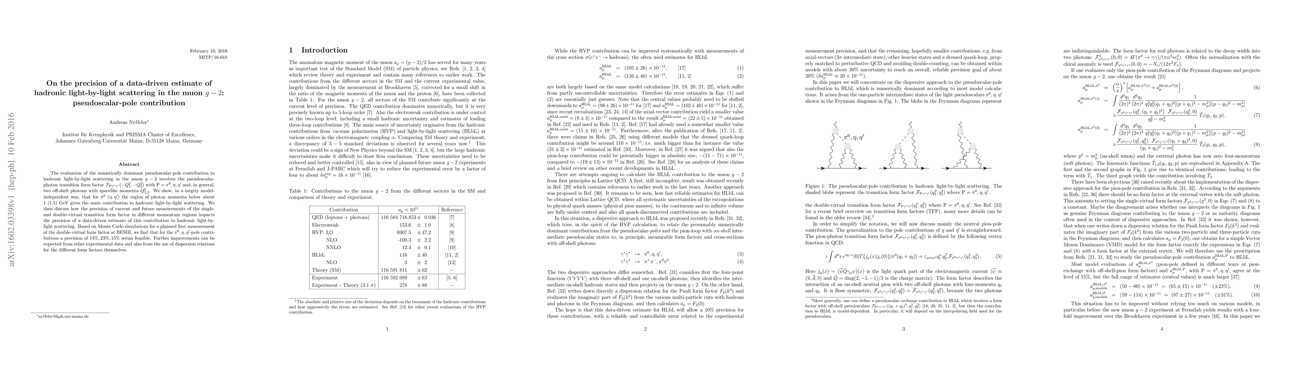 The evaluation of the numerically dominant pseudoscalar-pole contribution to hadronic light-by-light scattering in the muon g-2 involves the pseudoscalar-photon transition form factor F_{P gamma^* gamma^*}(-Q_1^2, -Q_2^2) with P = pi^0, eta, eta^\prime and, in general, two off-shell photons with spacelike momenta Q_{1,2}^2. We show, in a largely model-independent way, that for pi^0 (eta, eta^\prime) the region of photon momenta below about 1 (1.5) GeV gives the main contribution to hadronic light-by-light scattering. We then discuss how the precision of current and future measurements of the single- and double-virtual transition form factor in different momentum regions impacts the precision of a data-driven estimate of this contribution to hadronic light-by-light scattering. Based on Monte Carlo simulations for a planned first measurement of the double-virtual form factor at BESIII, we find that for the pi^0, eta, eta^\prime-pole contributions a precision of 14\%, 23\%, 15\% seems feasible. Further improvements can be expected from other experimental data and also from the use of dispersion relations for the different form factors themselves.