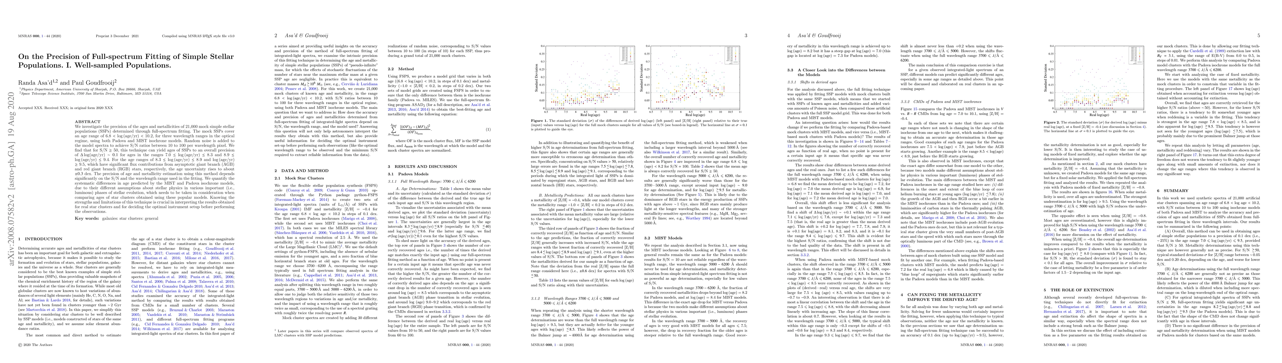 This paper evaluates the precision of full-spectrum fitting techniques for determining ages and metallicities of 21,000 mock simple stellar populations (SSPs) across various signal-to-noise ratios. It finds that for S/N ≥ 50, the method can yield age estimates with an overall precision of ±0.1 dex for certain age ranges, but uncertainties increase to ±0.3 dex in age ranges dominated by AGB and RGB stars.