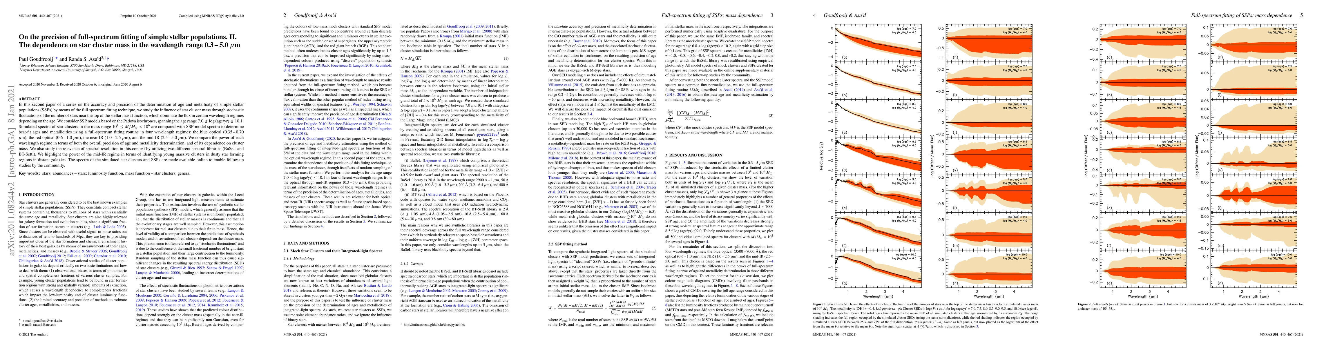 This paper investigates the precision of full-spectrum fitting techniques for determining age and metallicity in simple stellar populations, focusing on the impact of star cluster mass. It compares simulated spectra across four wavelength regimes, highlighting the mid-IR's effectiveness in identifying young, massive clusters in dusty environments.