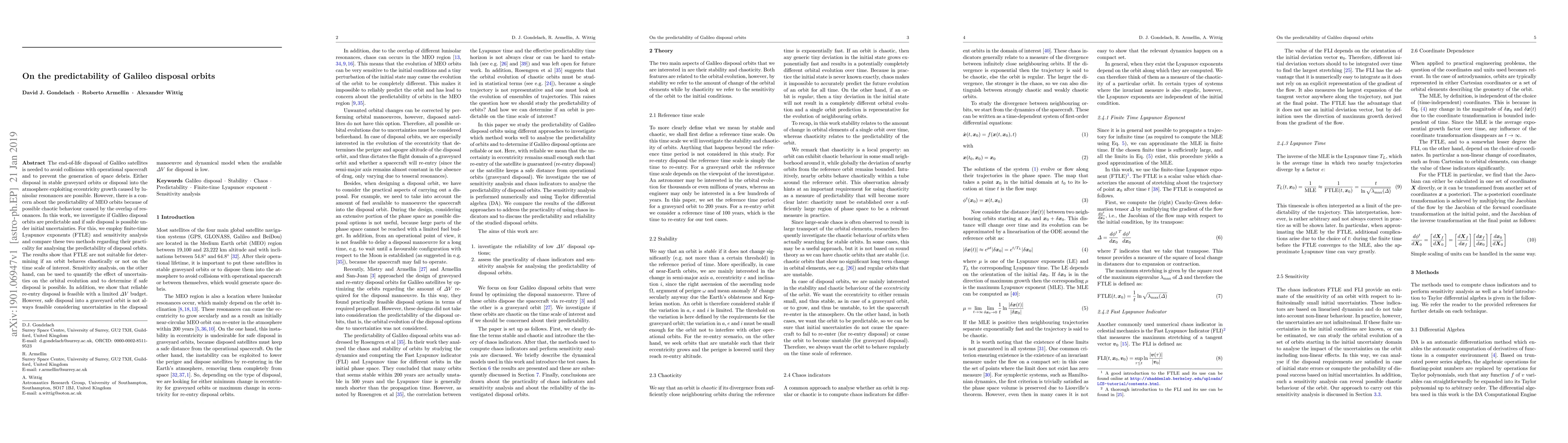 This paper investigates the predictability of Galileo satellite disposal orbits to ensure safe end-of-life operations, finding that while sensitivity analysis can quantify uncertainty effects, graveyard orbit disposal is not always feasible under low ΔV budgets. Reliable atmospheric re-entry disposal is shown to be achievable with limited ΔV.