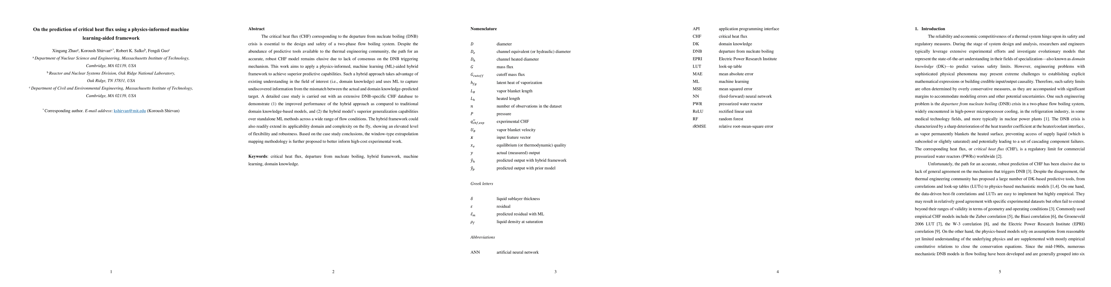 This paper proposes a physics-informed machine learning-aided framework to predict critical heat flux (CHF) in two-phase flow boiling systems, demonstrating improved performance and generalization over traditional models. The hybrid approach combines domain knowledge with machine learning to capture complex, undiscovered patterns, enhancing safety and design in thermal engineering.