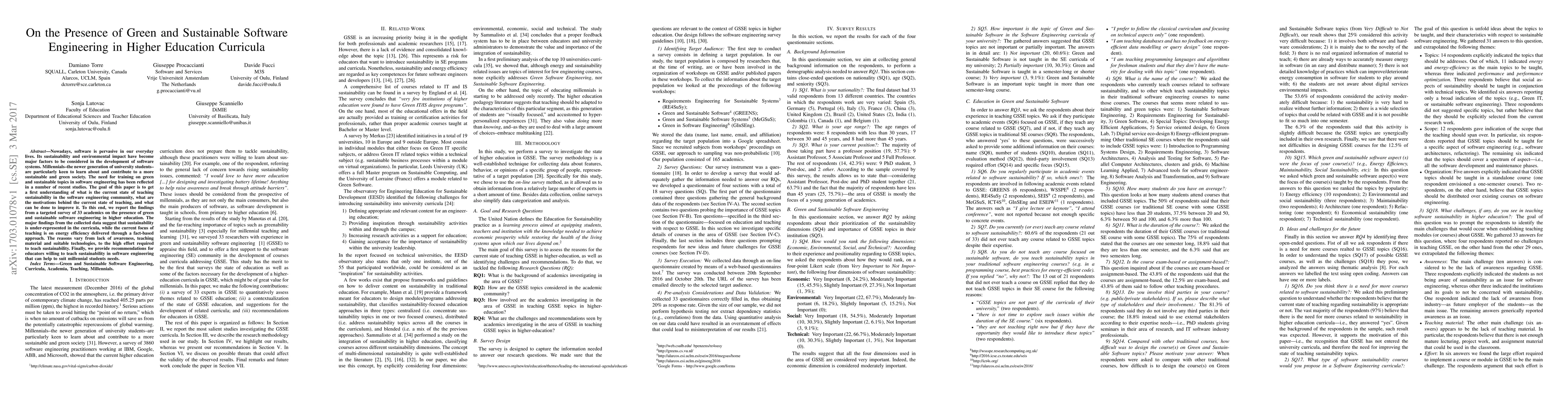 A survey-based study was conducted to investigate the current state of green software engineering in higher education.